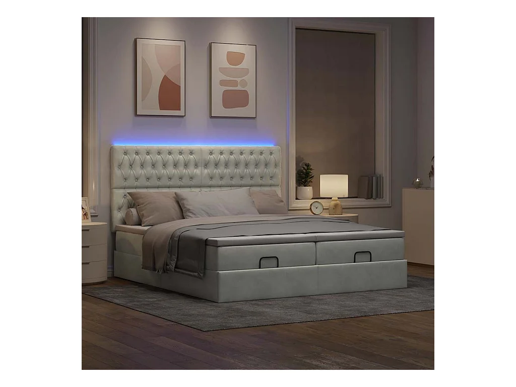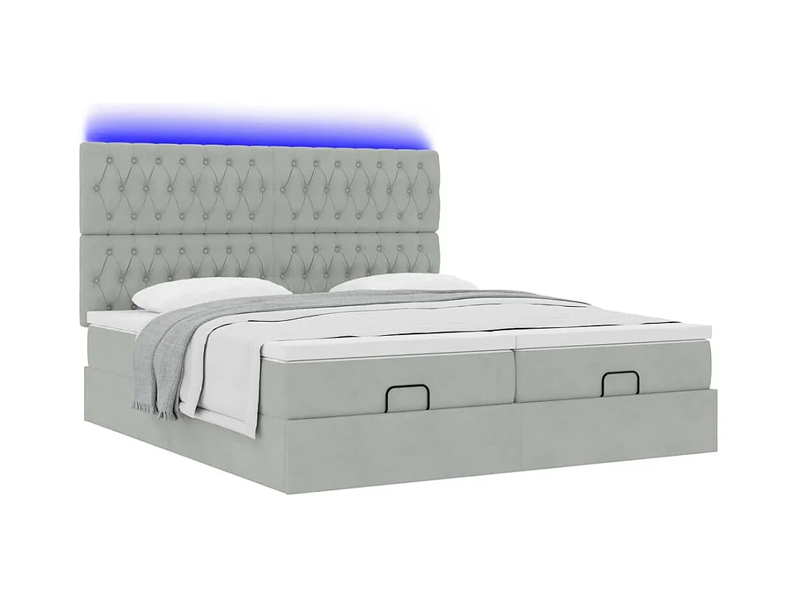 Ottoman bed met matrassen en LED's 200x200cm fluweel lichtgrijs