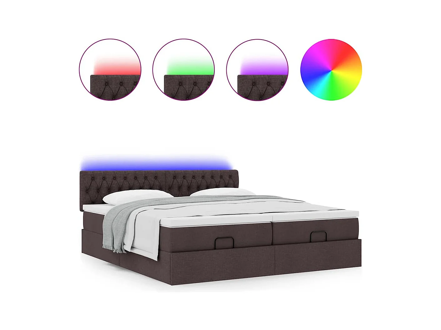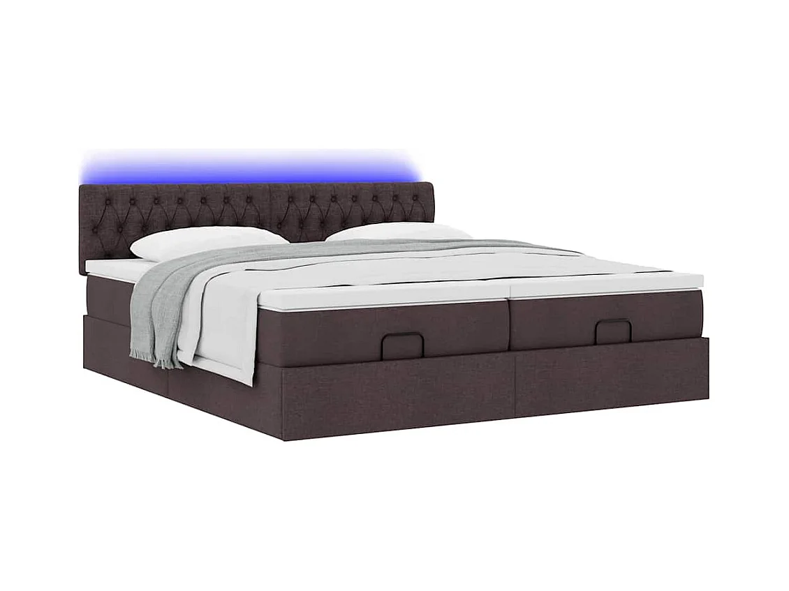 Ottoman bed met matrassen en LED's 200x200cm stof donkerbruin