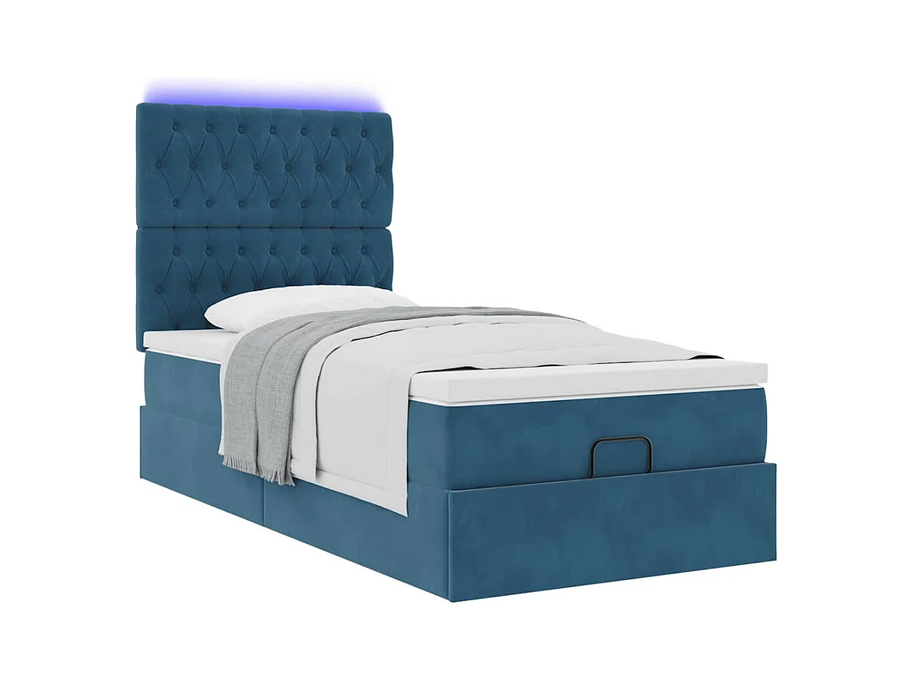 Ottoman bed met matrassen en LED's 90x200cm fluweel donkerblauw