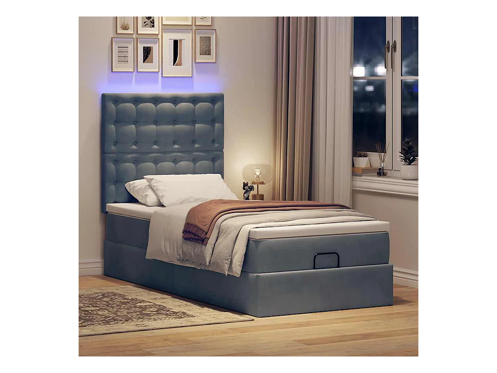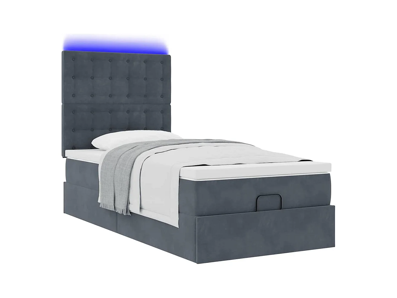 Ottoman bed met matrassen en LED's 90x200cm fluweel donkergrijs