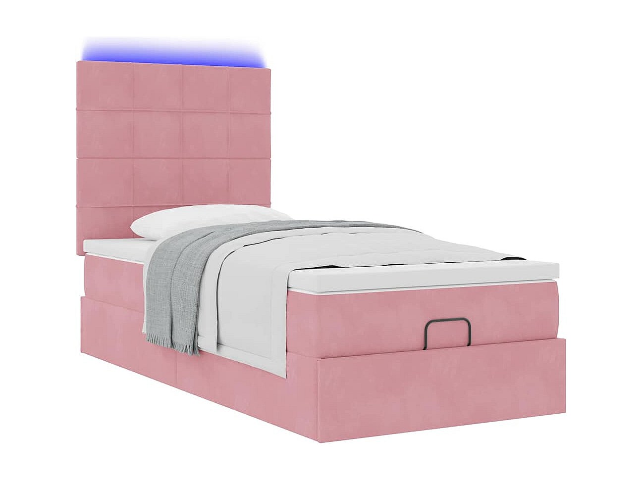 Ottoman bed met matrassen en LED's 90x200cm fluweel roze