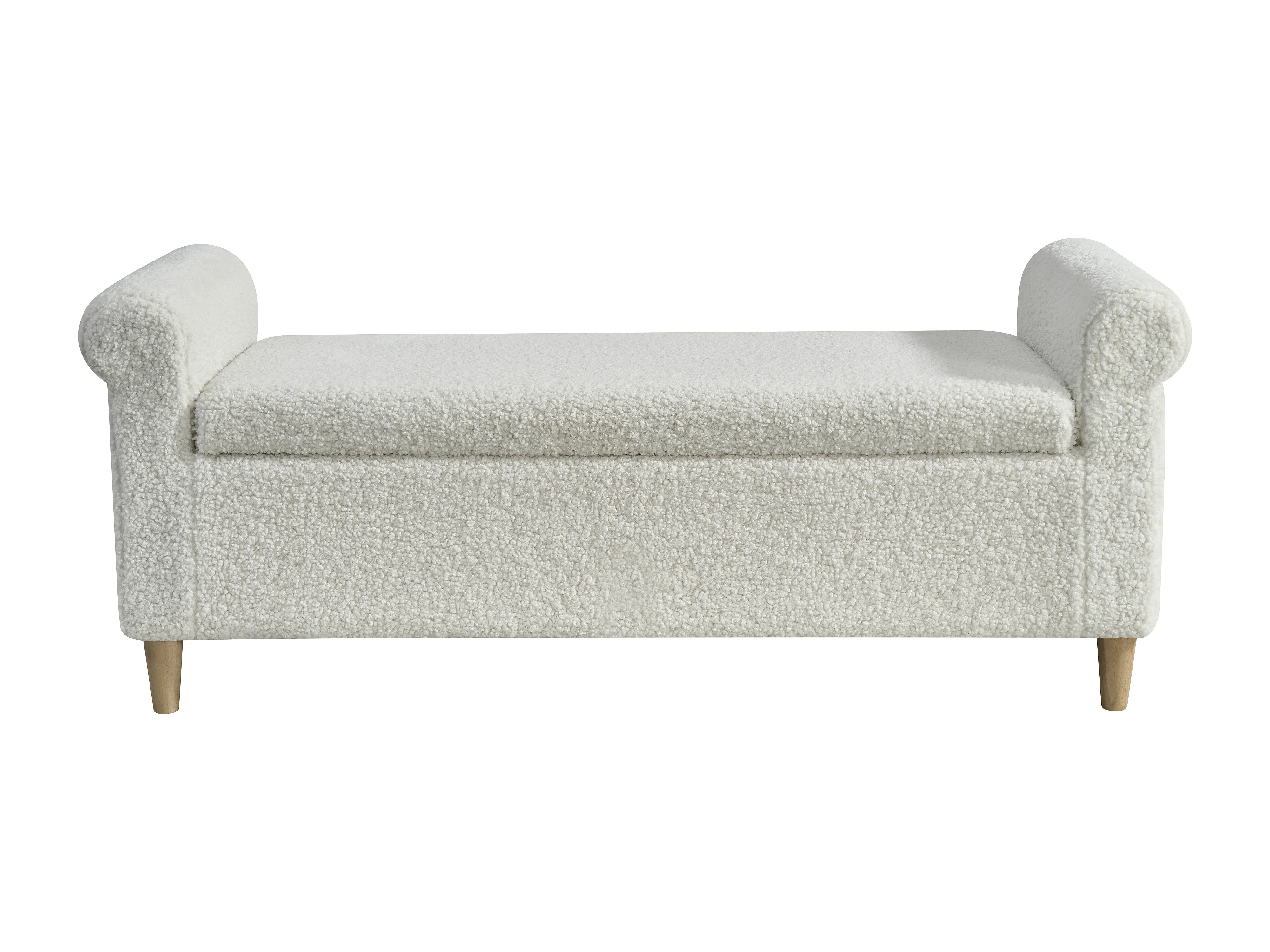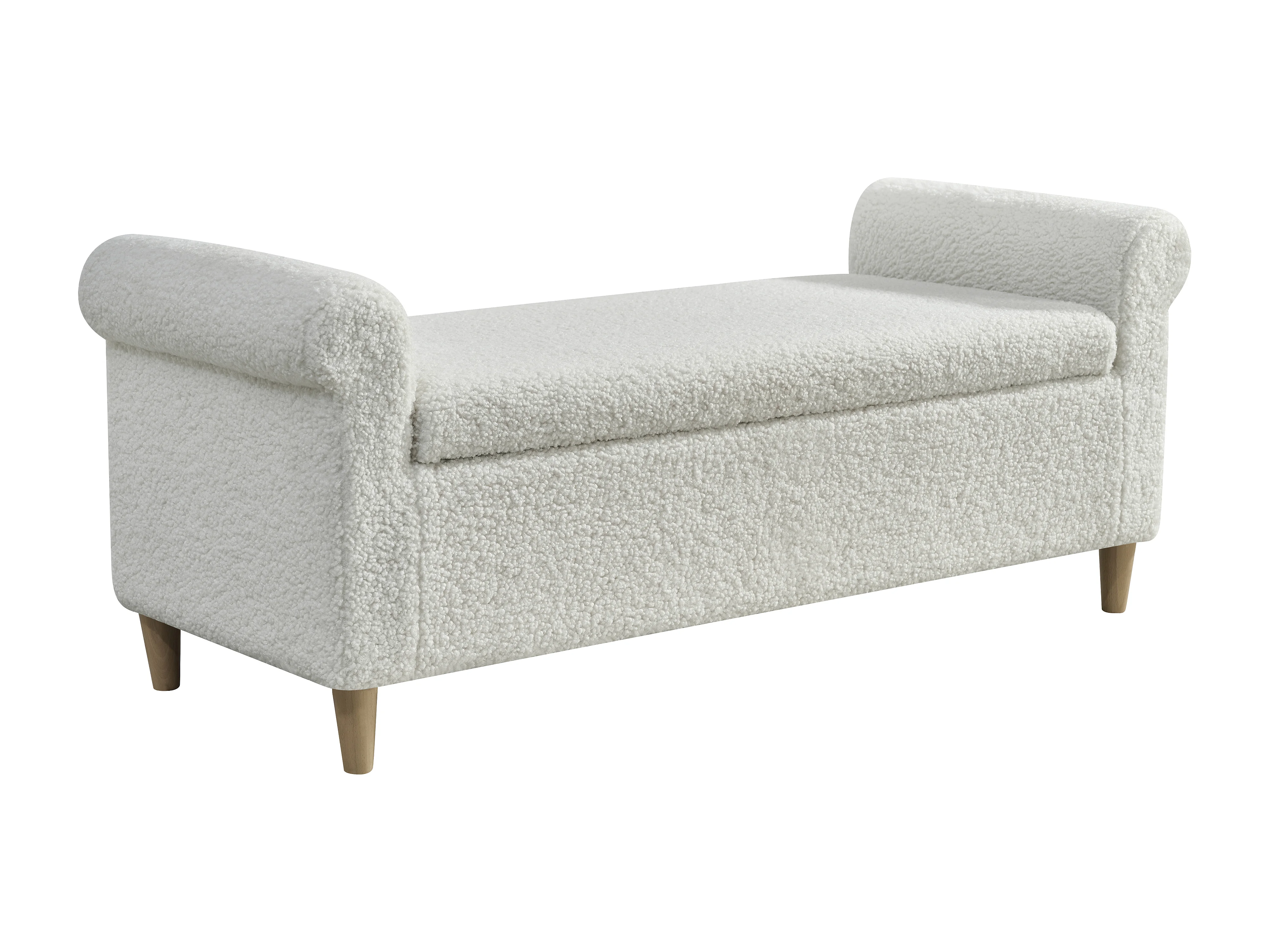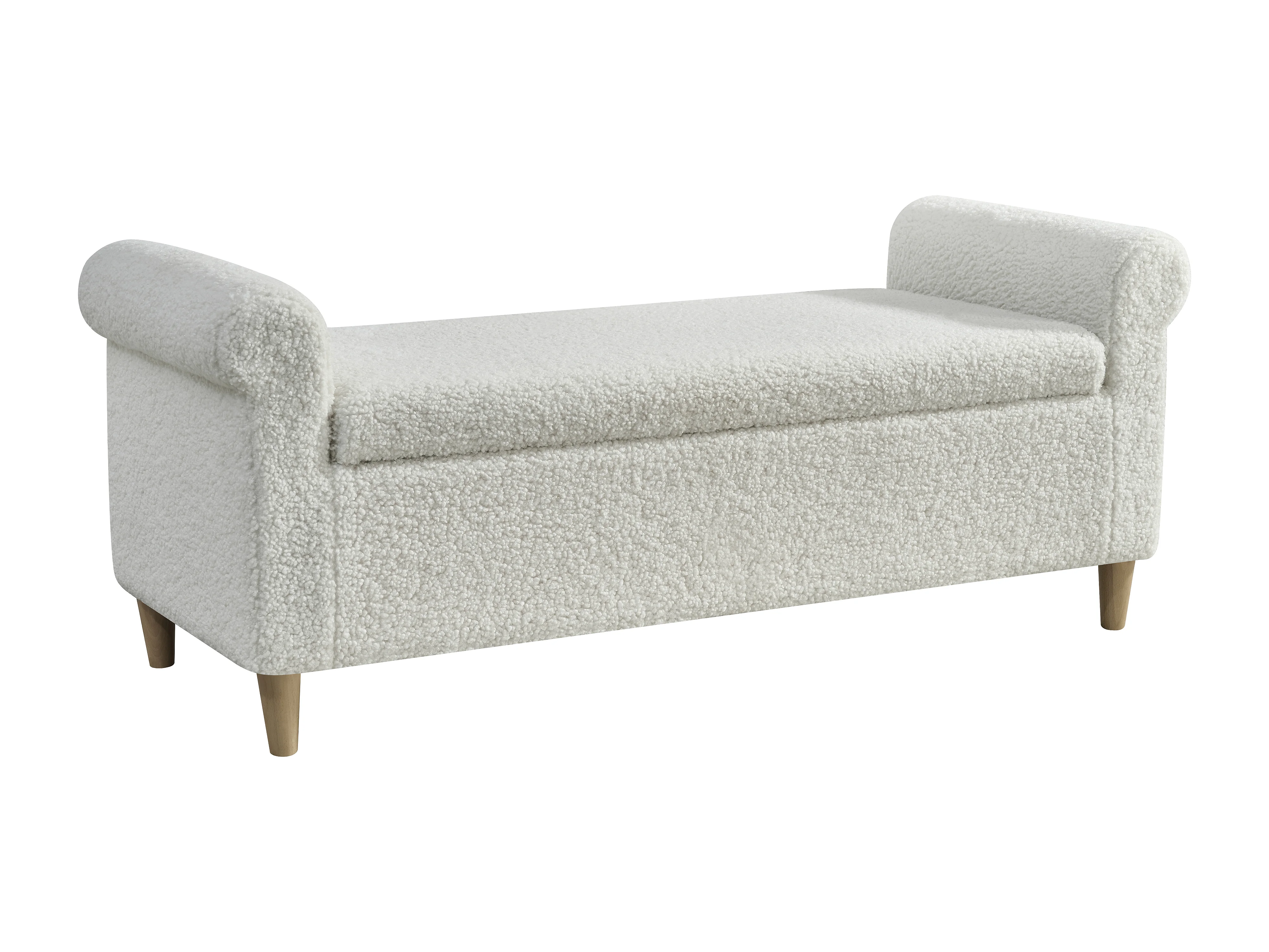 Ottoman, bedbank met opbergvak, wit - Stof en hout