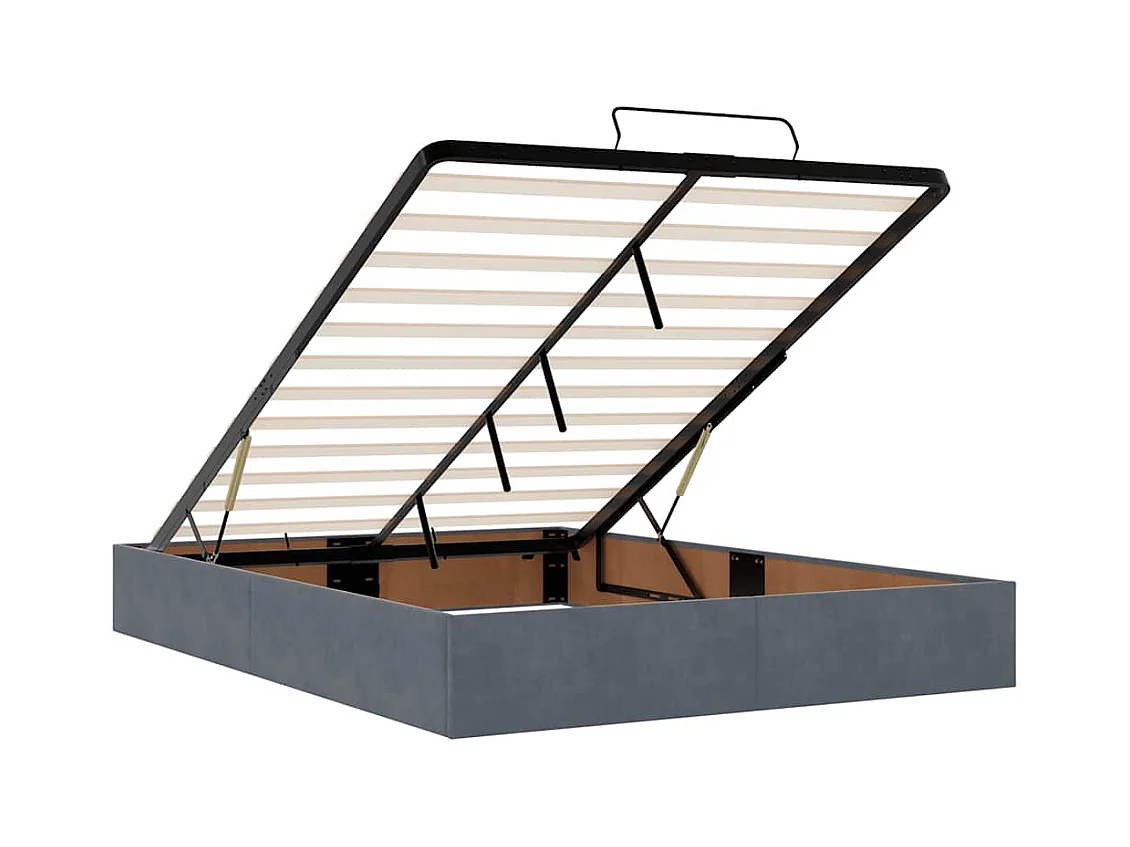 Tweepersoonsbed 160 x 200 cm met opbergruimte en lades, fluweel, lattenbodem, hydraulisch bed, grijs