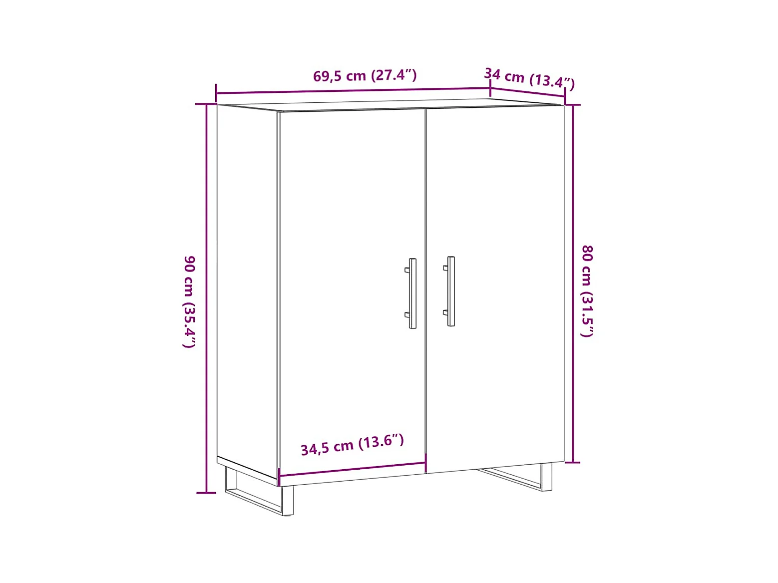 Gerookt eikenhouten dressoir 69,5x34x90 cm bewerkt hout