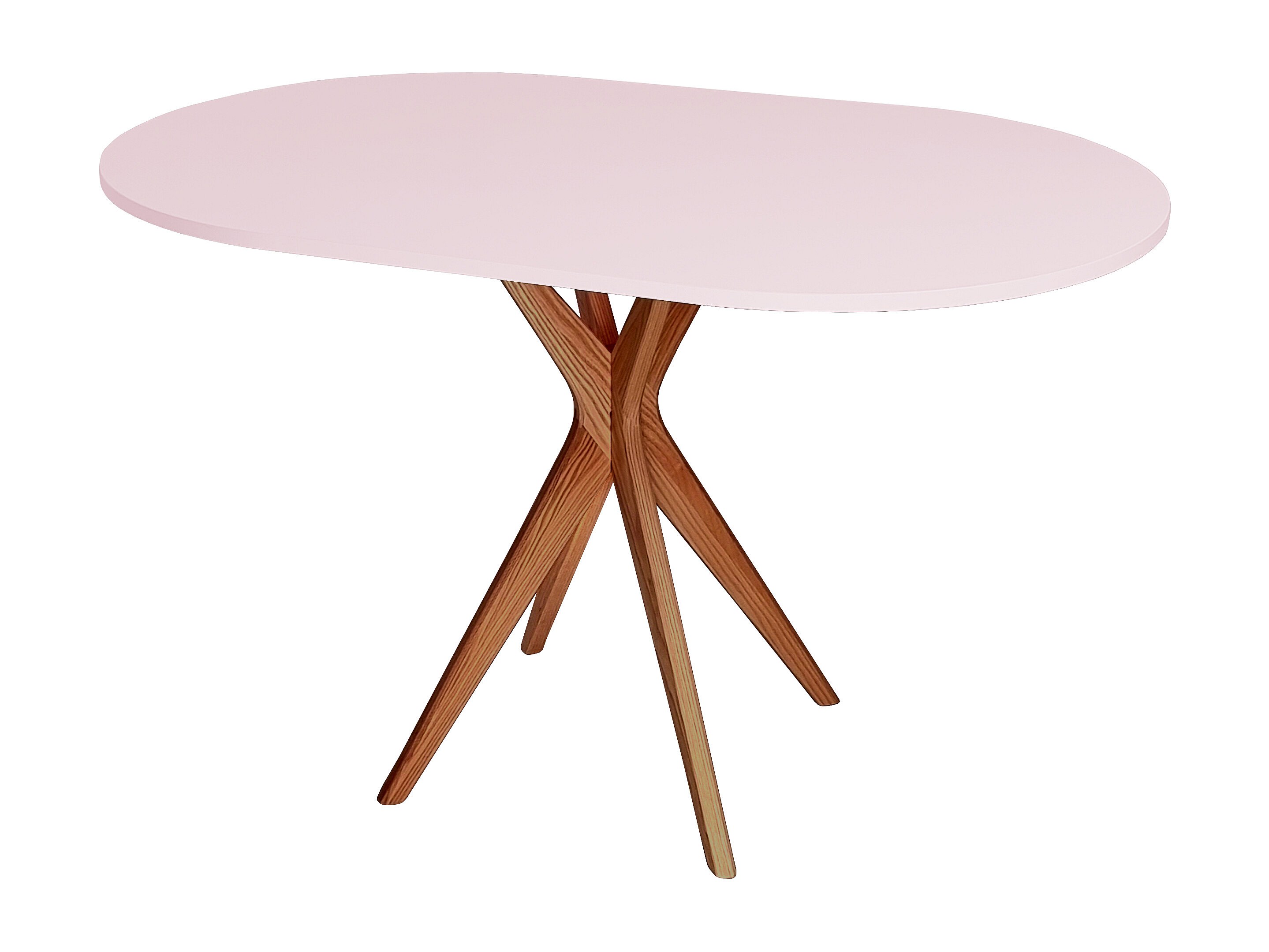 Ovale eettafel 75x100cm Jubi Poederroze met eiken poten