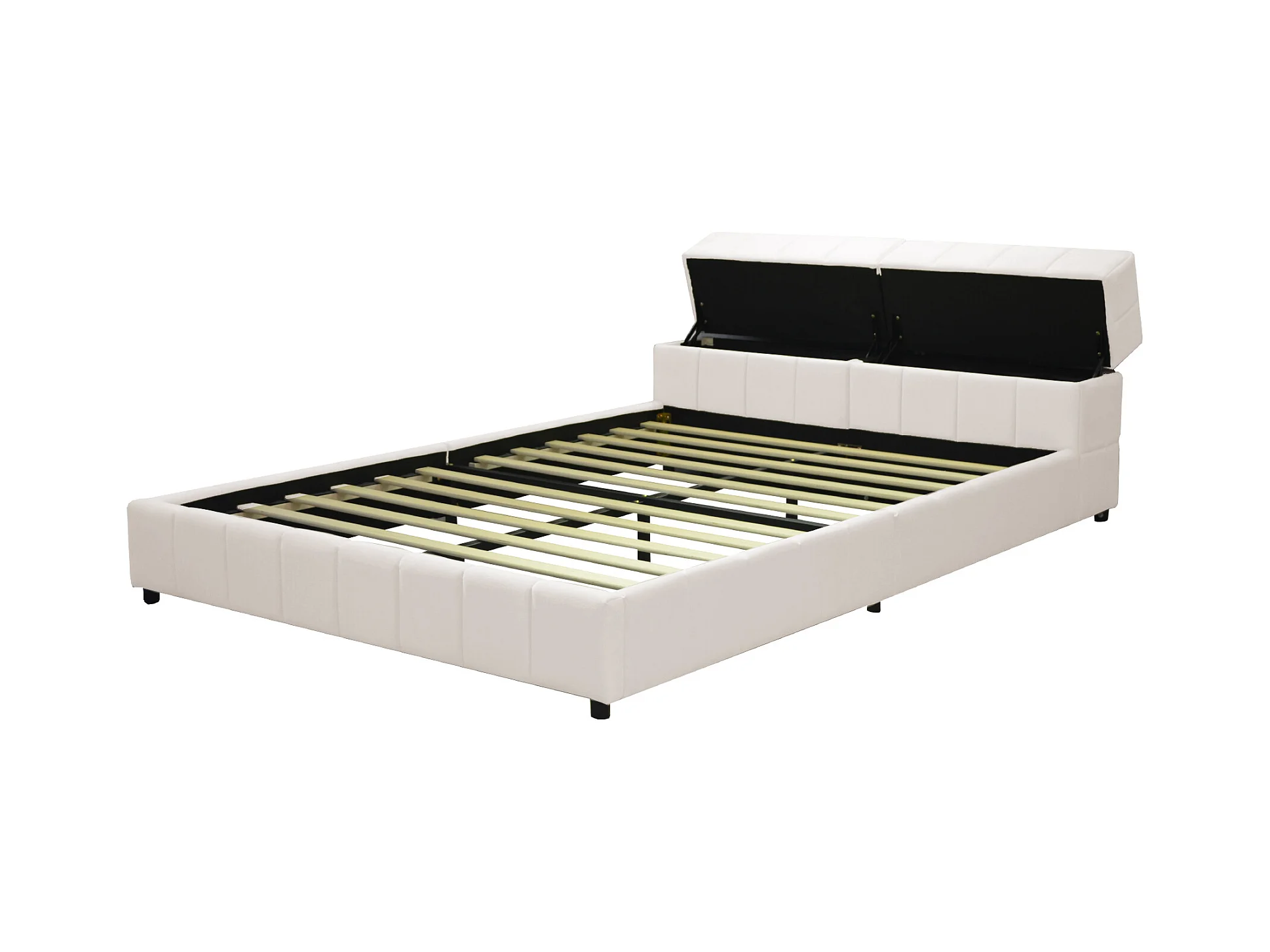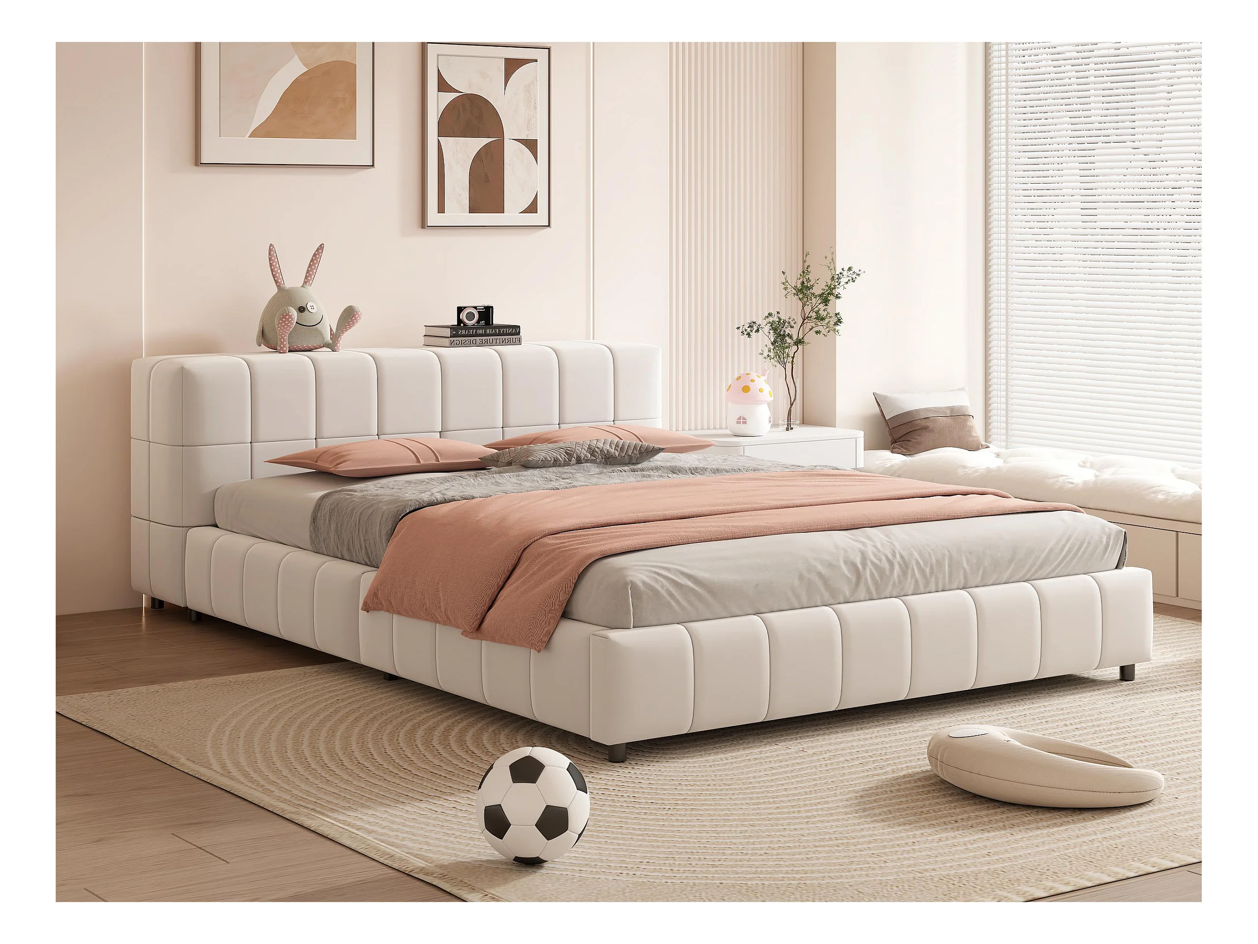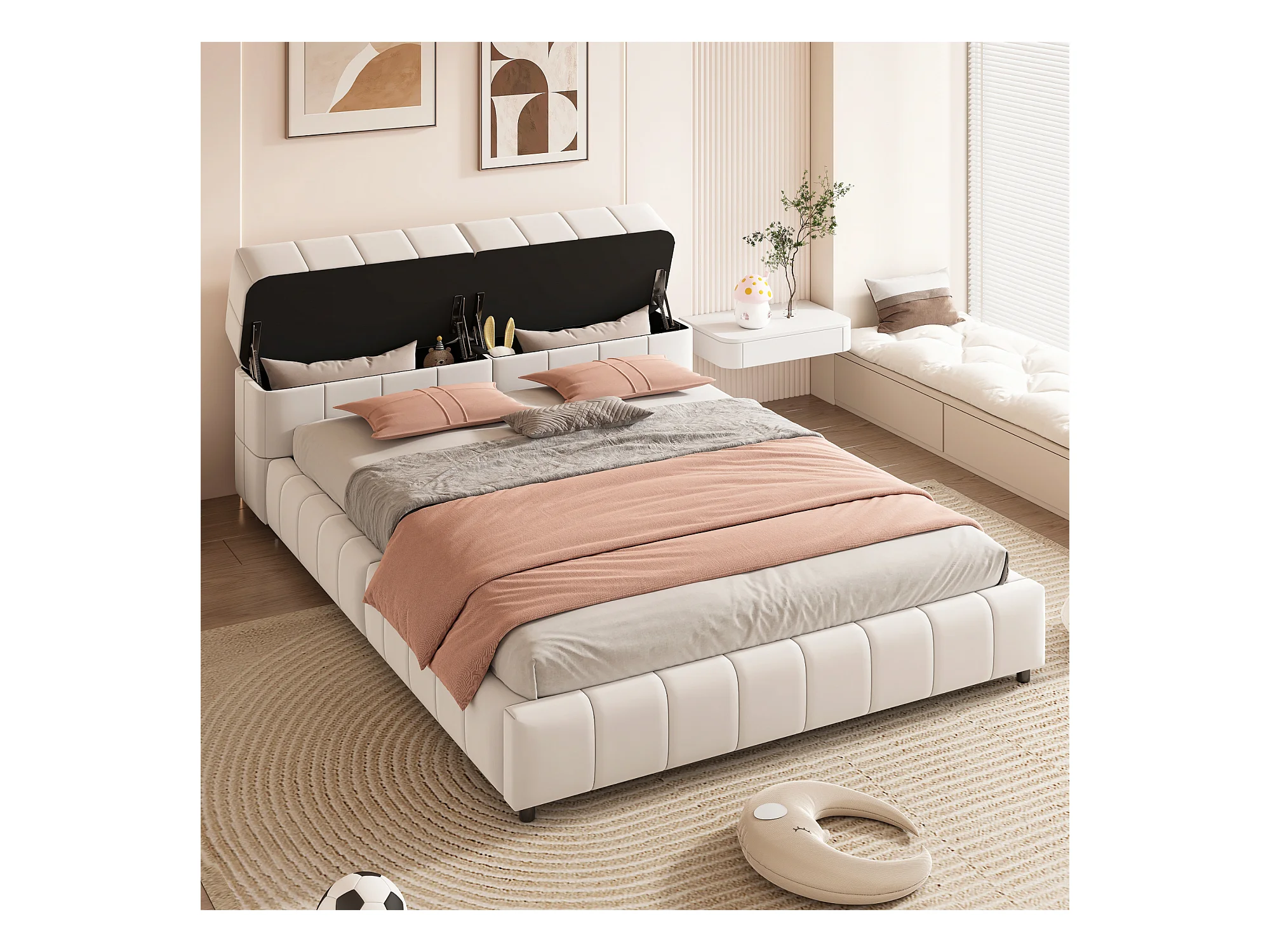 <p><b>Gecapitonneerd bed 140x200cm - hoofdbord met opbergruimte - Beige</b></p>