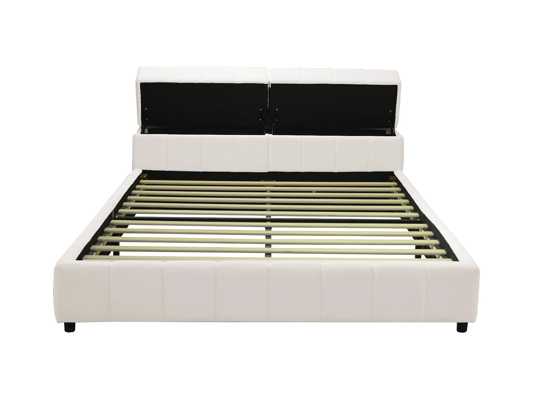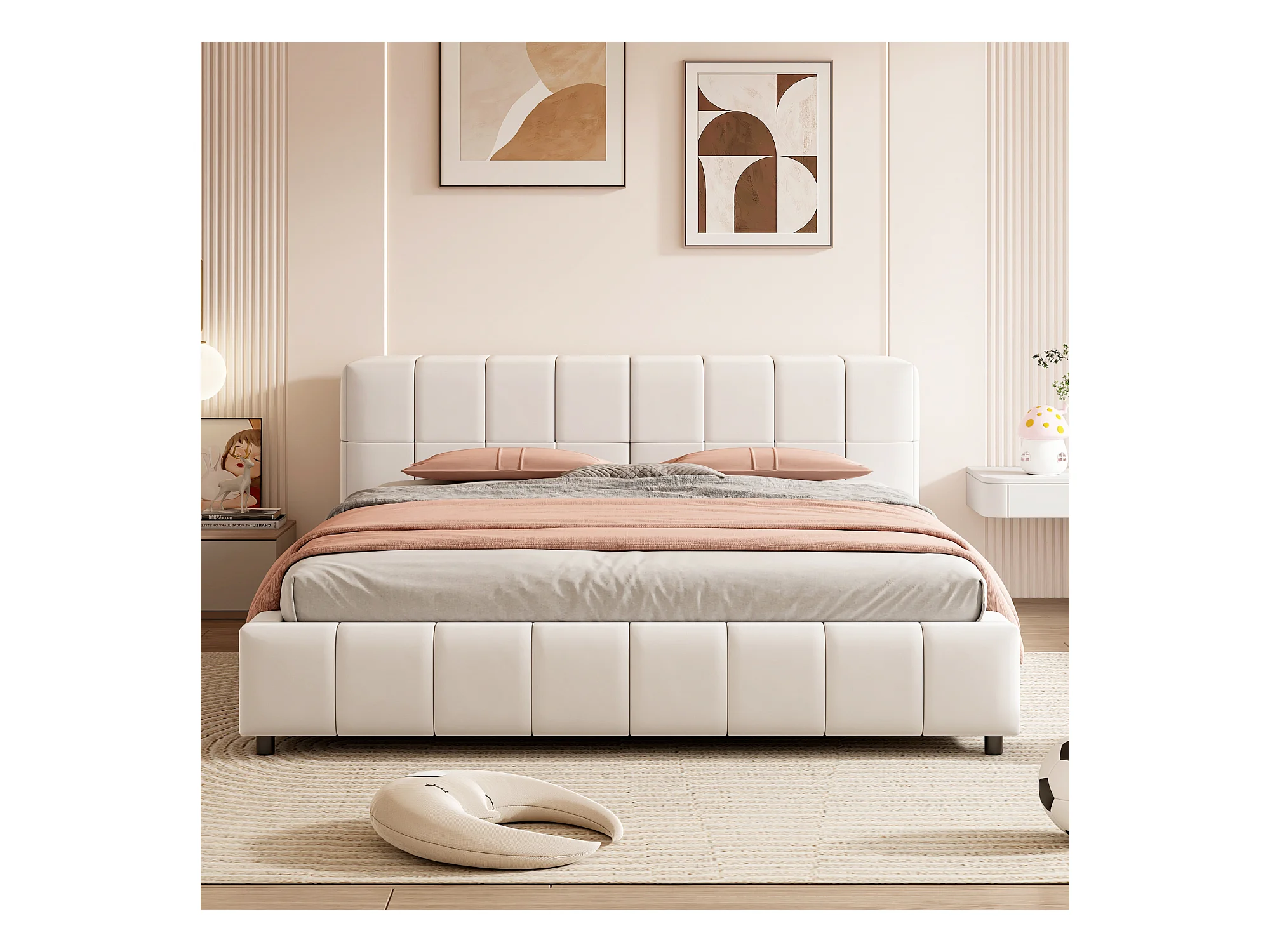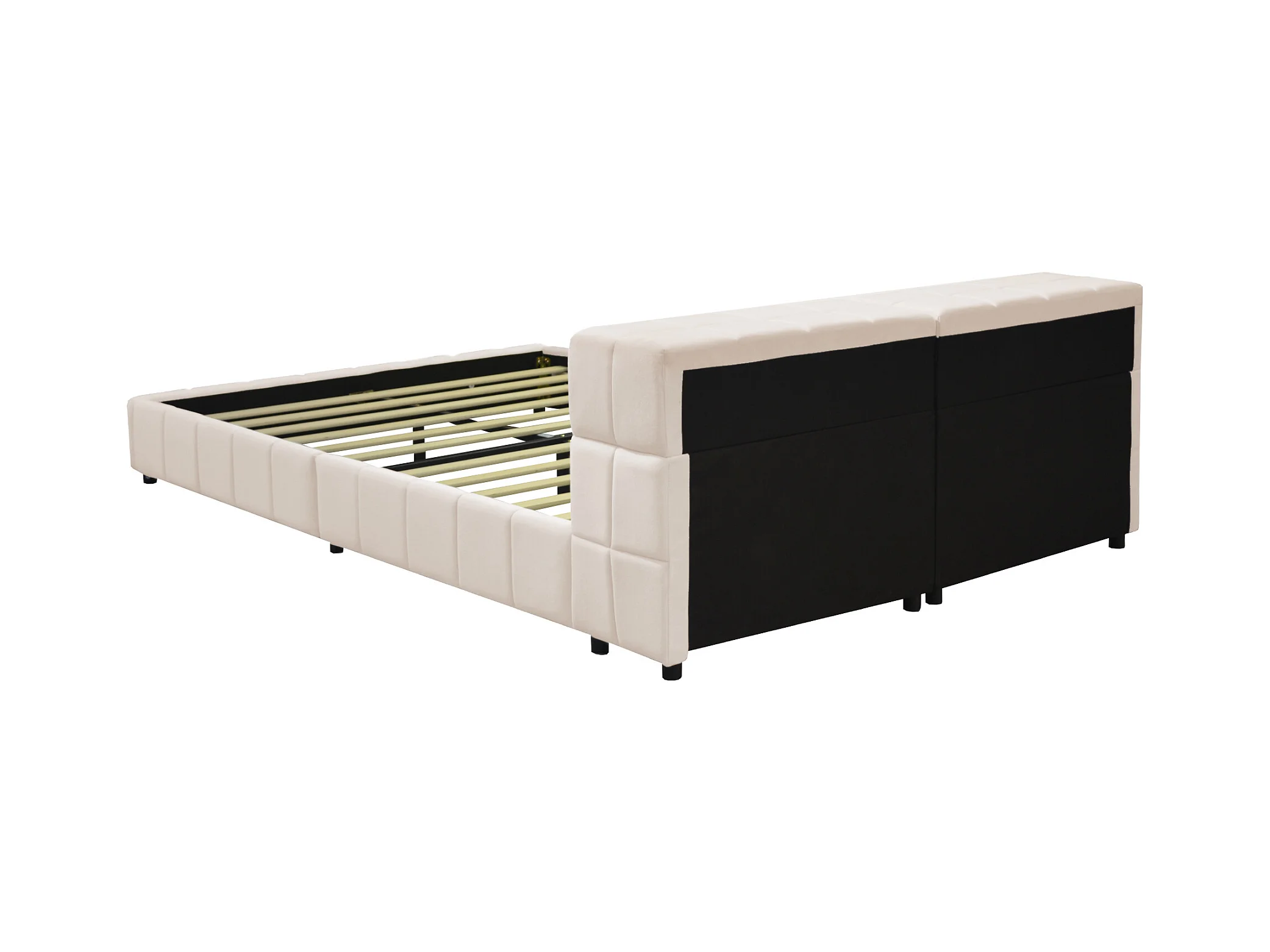 <p><b>Gecapitonneerd bed 140x200cm - hoofdbord met opbergruimte - Beige</b></p>