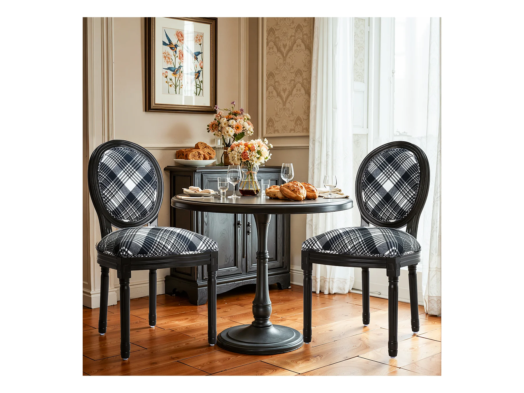 Paar vaste eetkamerstoelen: zwart frame, zwart-wit geruite stof - 56×50×94,5 cm - Hedendaagse stijl