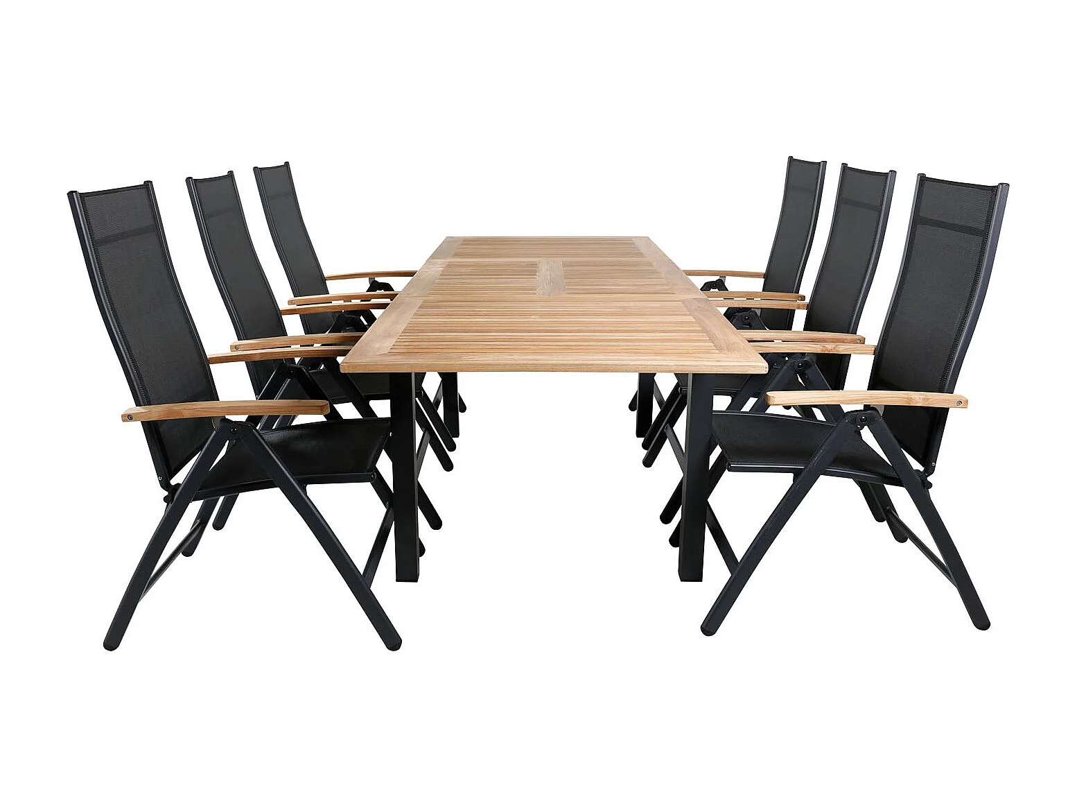 Panama tuinmeubelset tafel 90x152/210cm en 6 stoel Panama zwart, naturel.