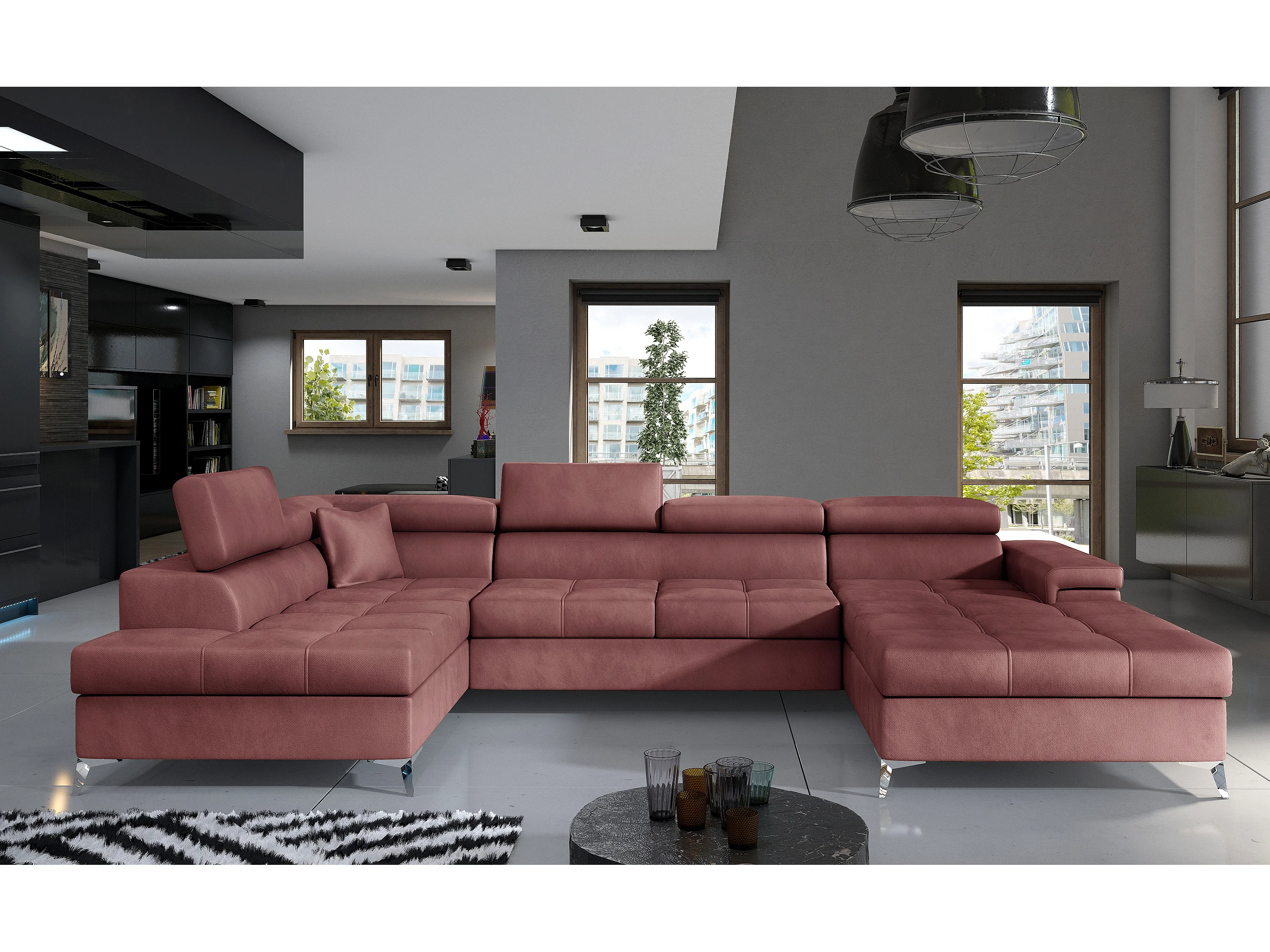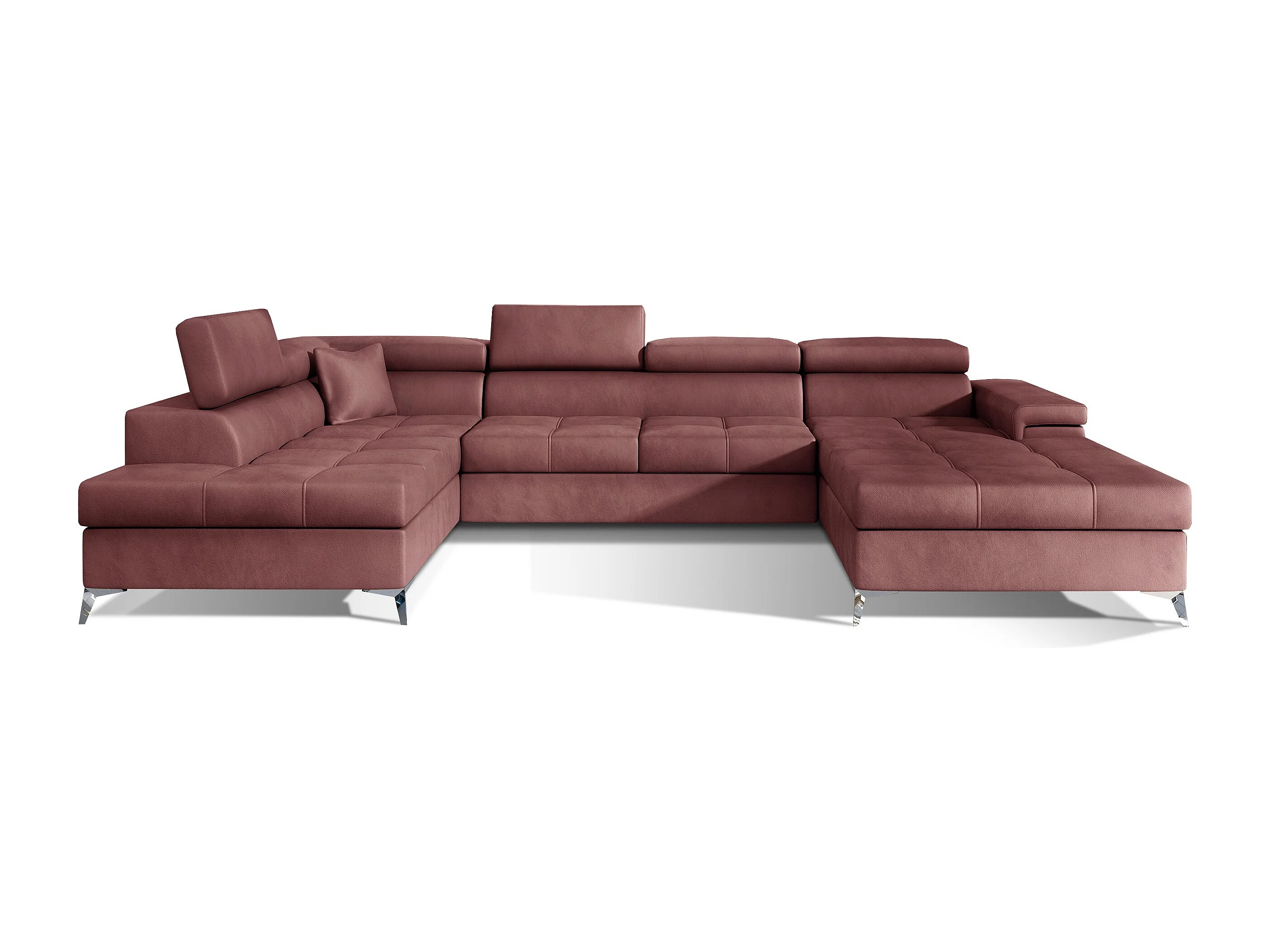 Panoramische bank koper roze fluwelen opbergdoos links Kutty 345 cm