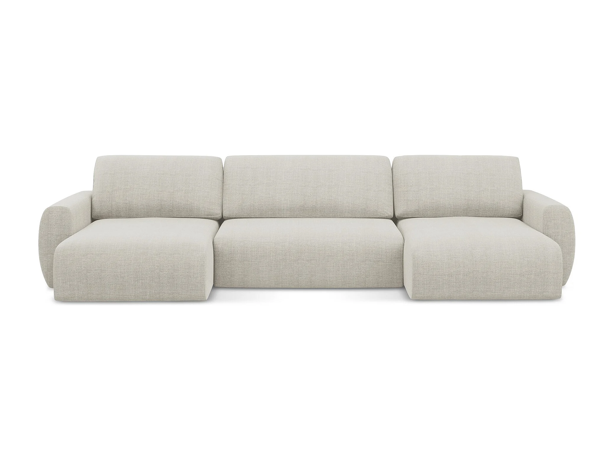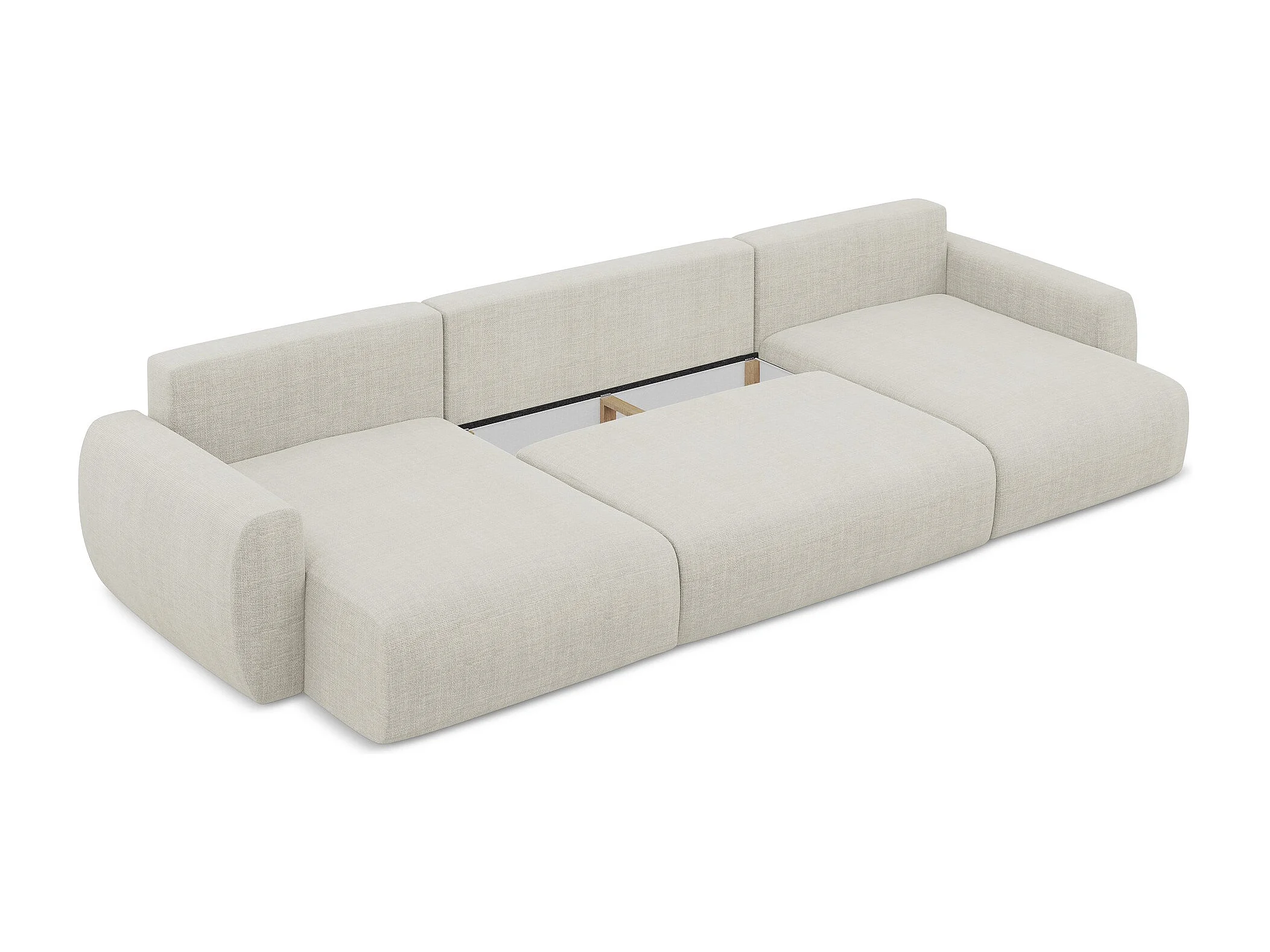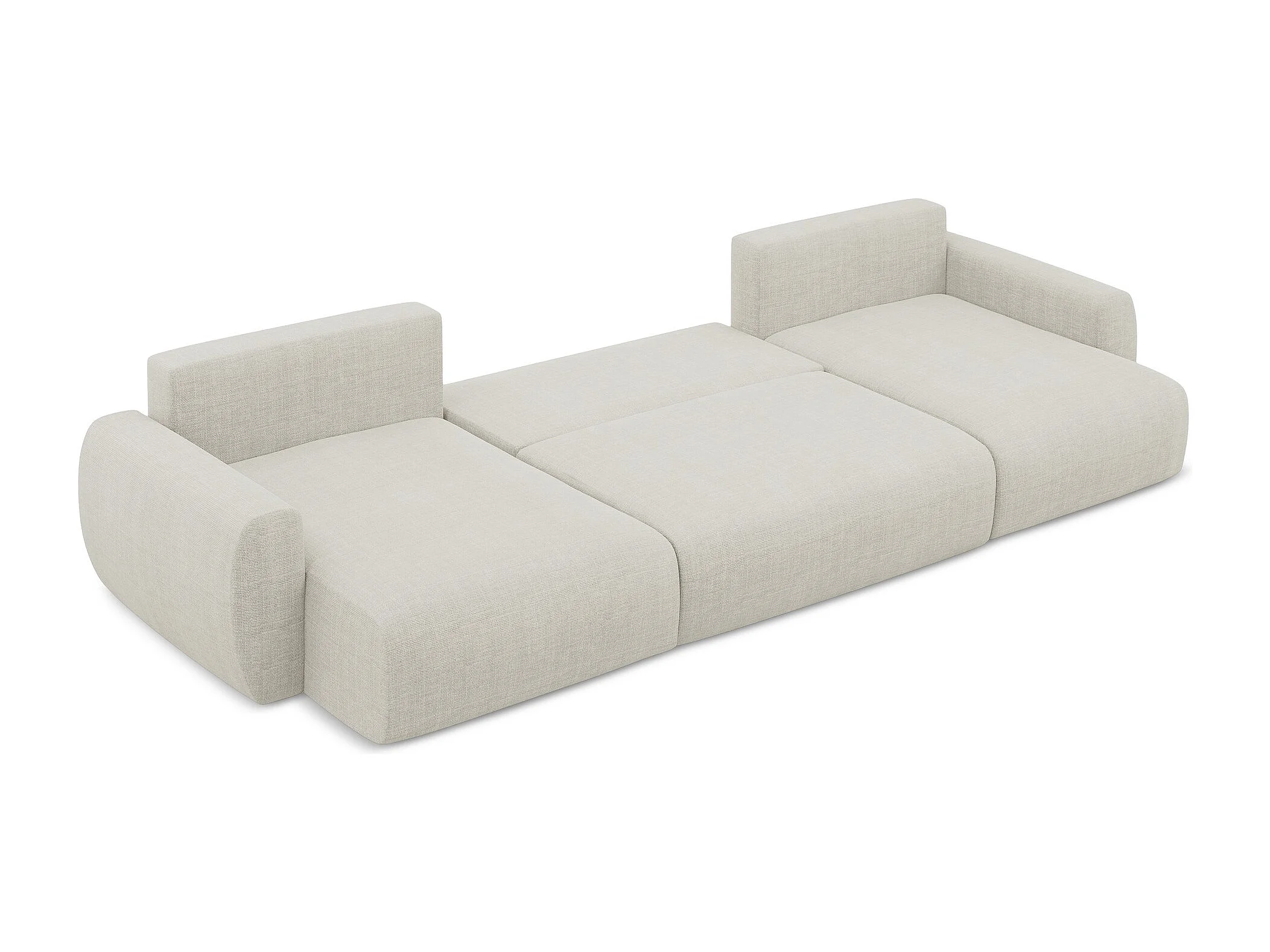 Panoramische bank met bedfunctie van lichtbeige textuurstof - ANELA