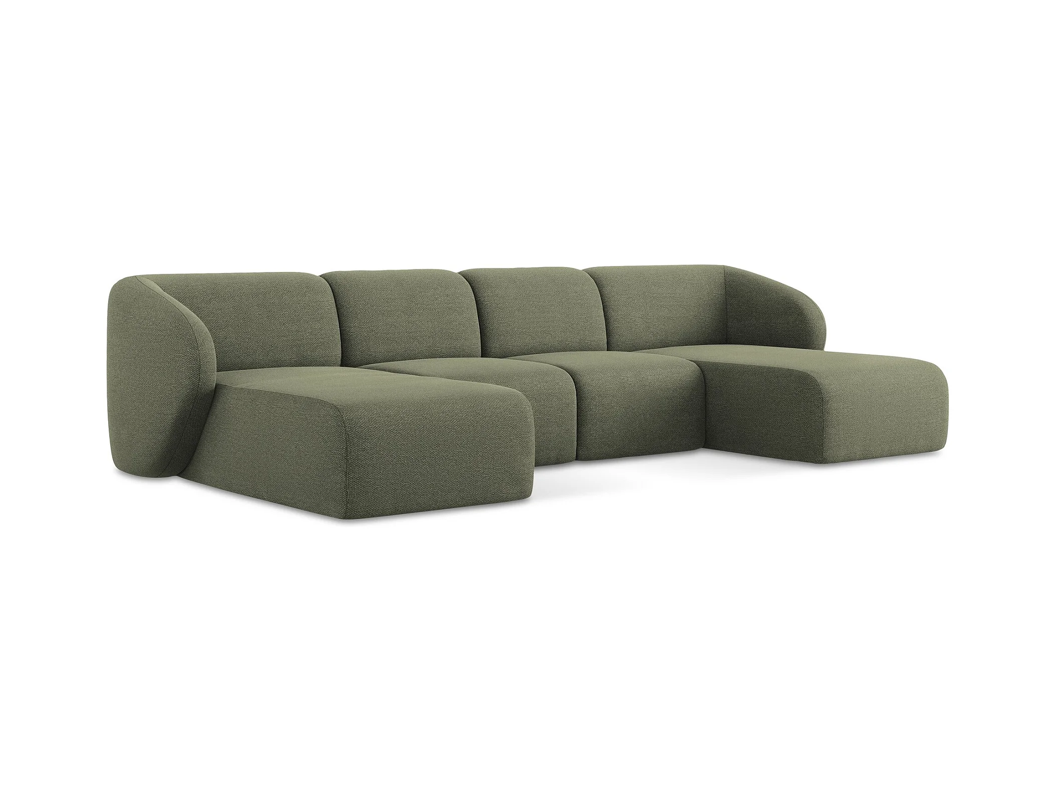 Panoramische hoekbank van olijfgroen bouclé - LANI