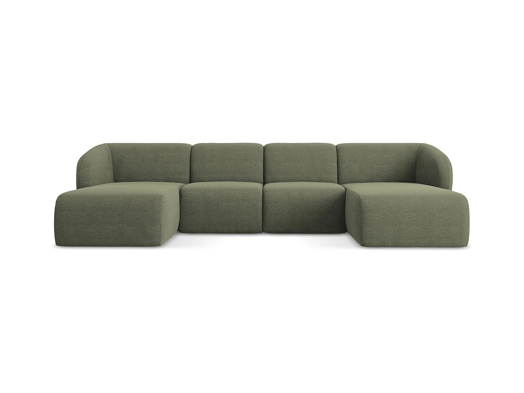 Modulaire panoramische bank van olijf chenille stof - OMAO