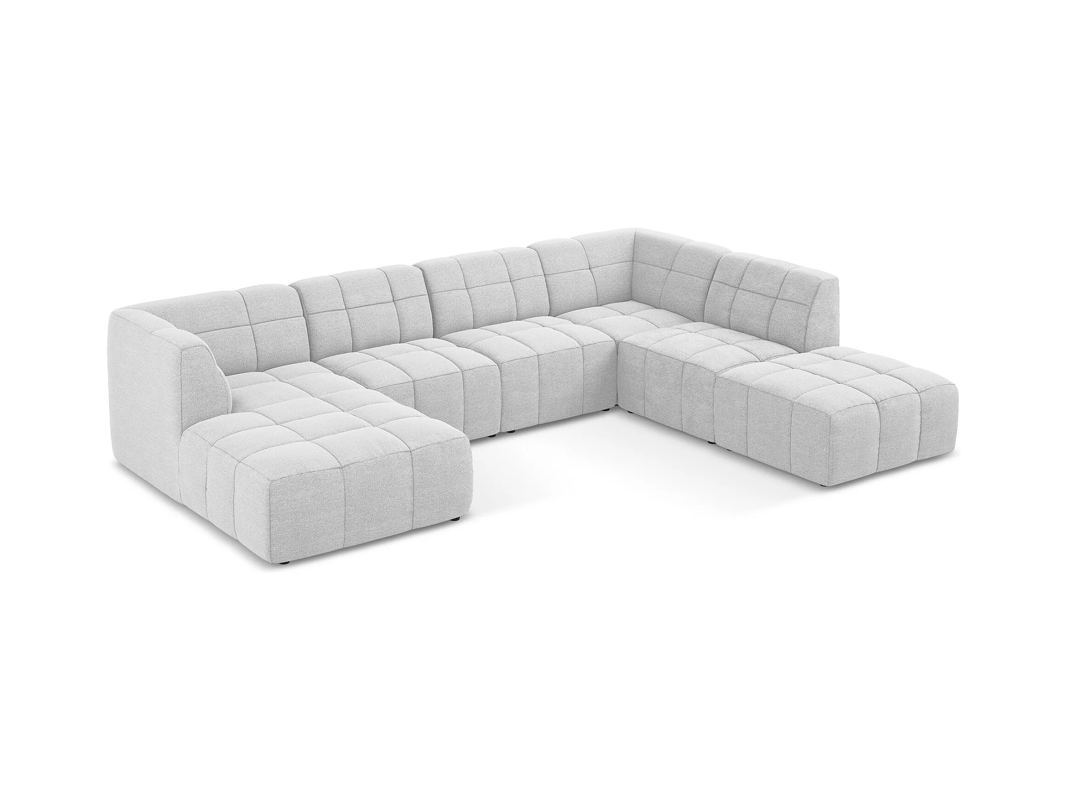 Panoramische hoekbank van zilver bouclé - ALOHA