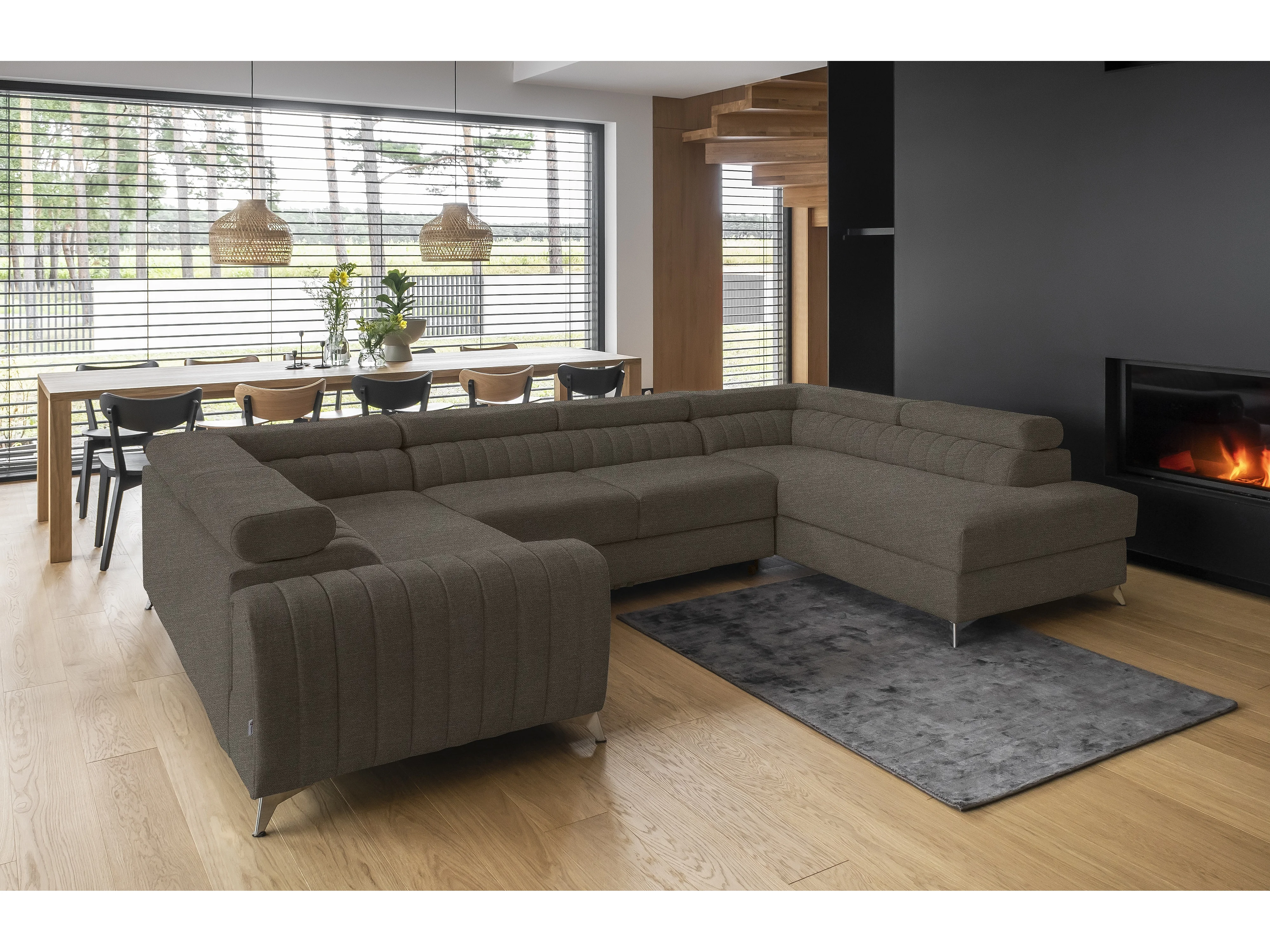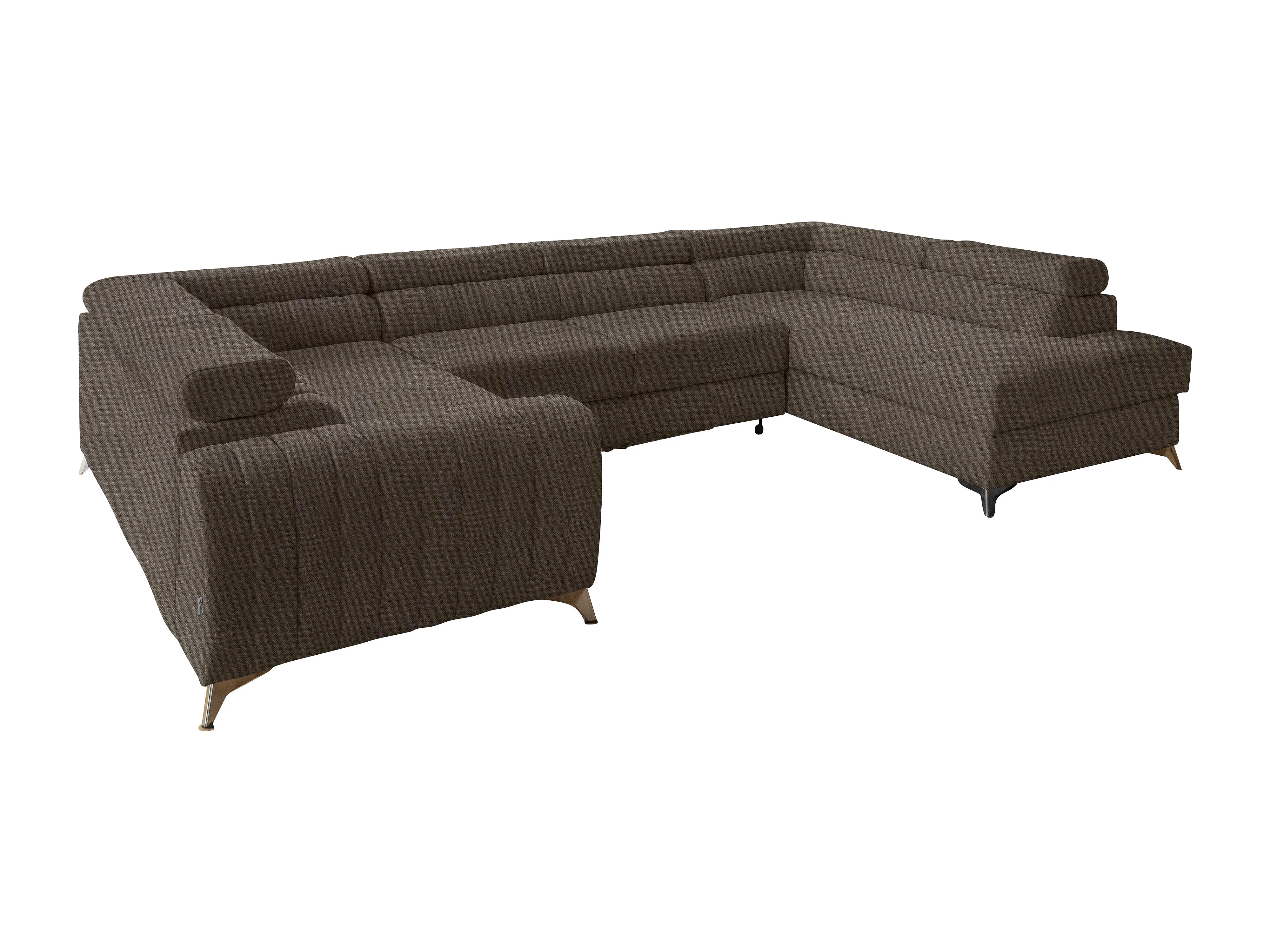 Panoramische slaapbank in bruine stof met opbergdoos Louve 340 cm-Opslagruimte naar rechts