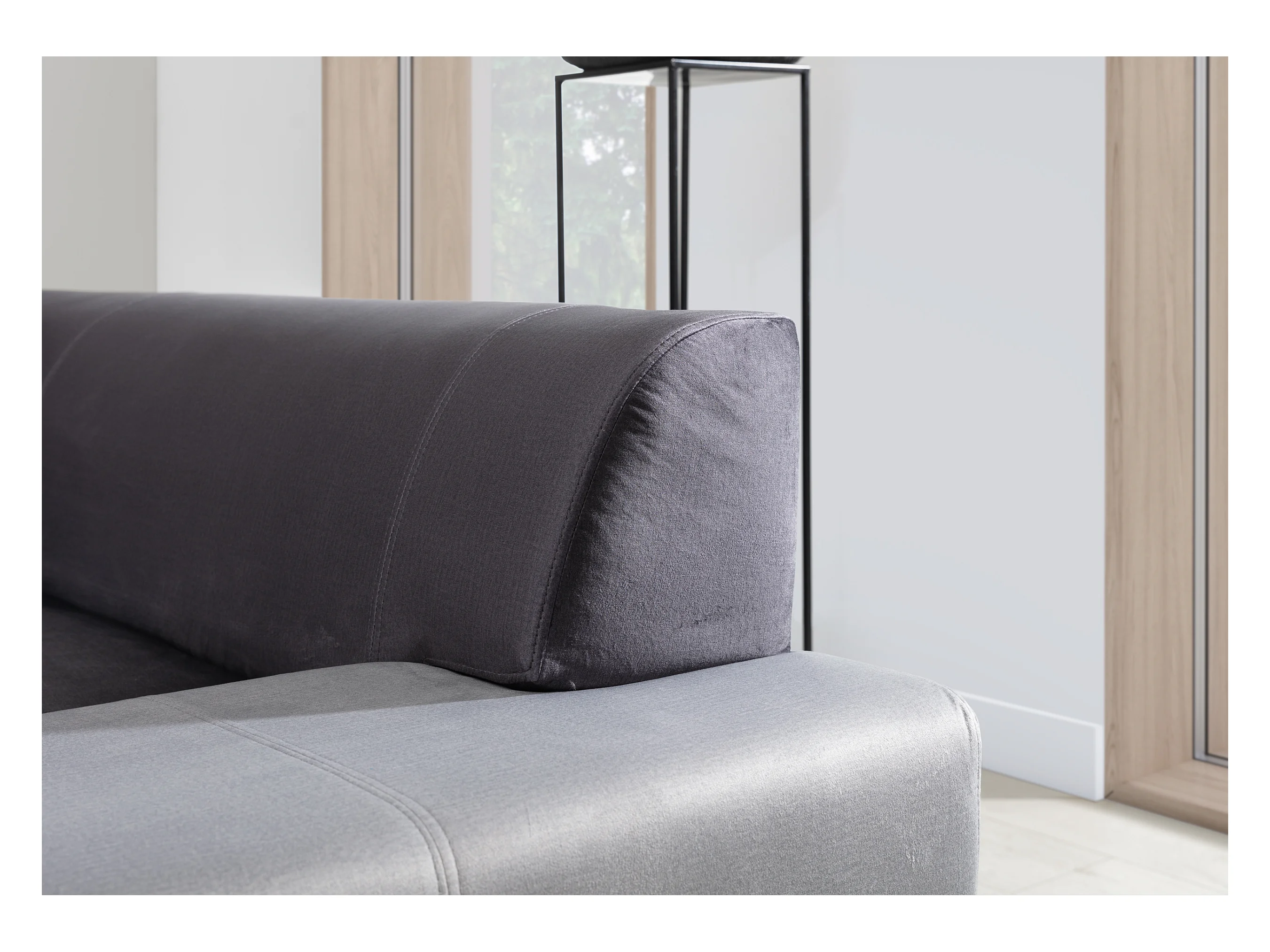 U rechte slaapbank in grijze stof en imitatie met Tovy opbergdoos 340 cm