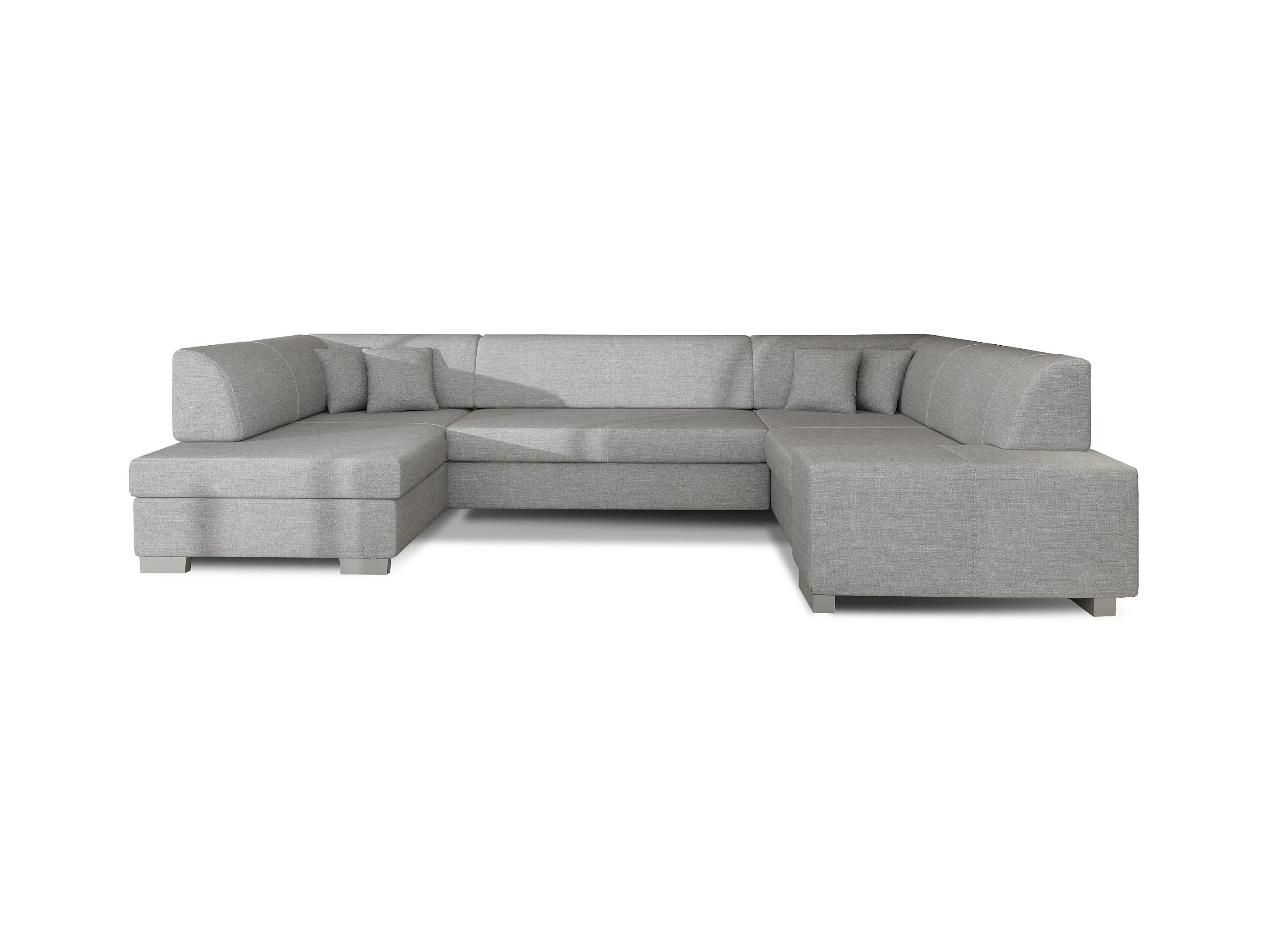 Linker U-slaapbank in lichtgrijze stof met Tovy opbergdoos 340 cm