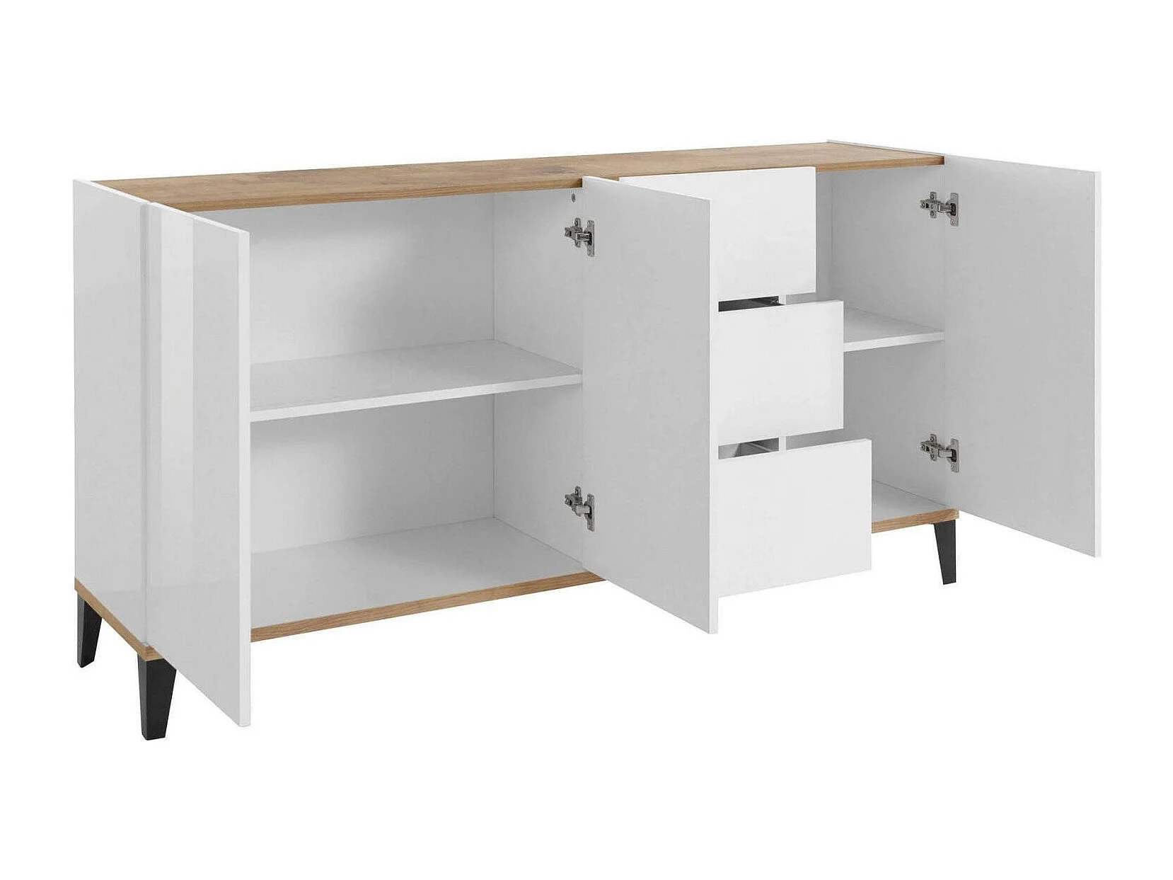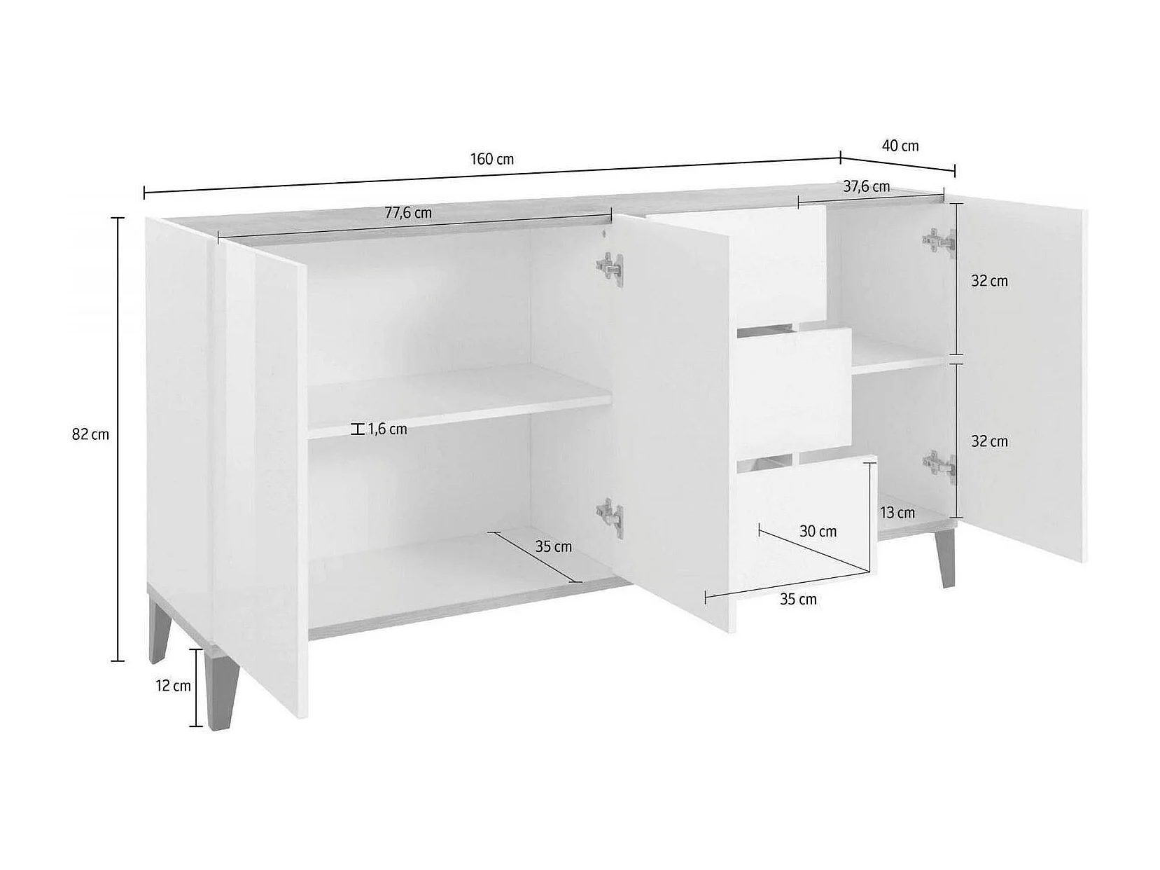 Dmora Dressoir Paolo 40x160x82h cm Wit Hoogglans 2 Planken, 3 Laden, Dressoir 4 Vakken Made in Italy