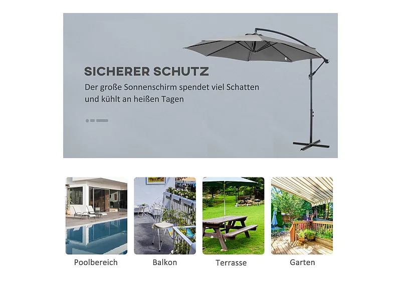 Parasol met slinger, met stalen structuur, polyesterstof, grijs (295x245x250 cm)