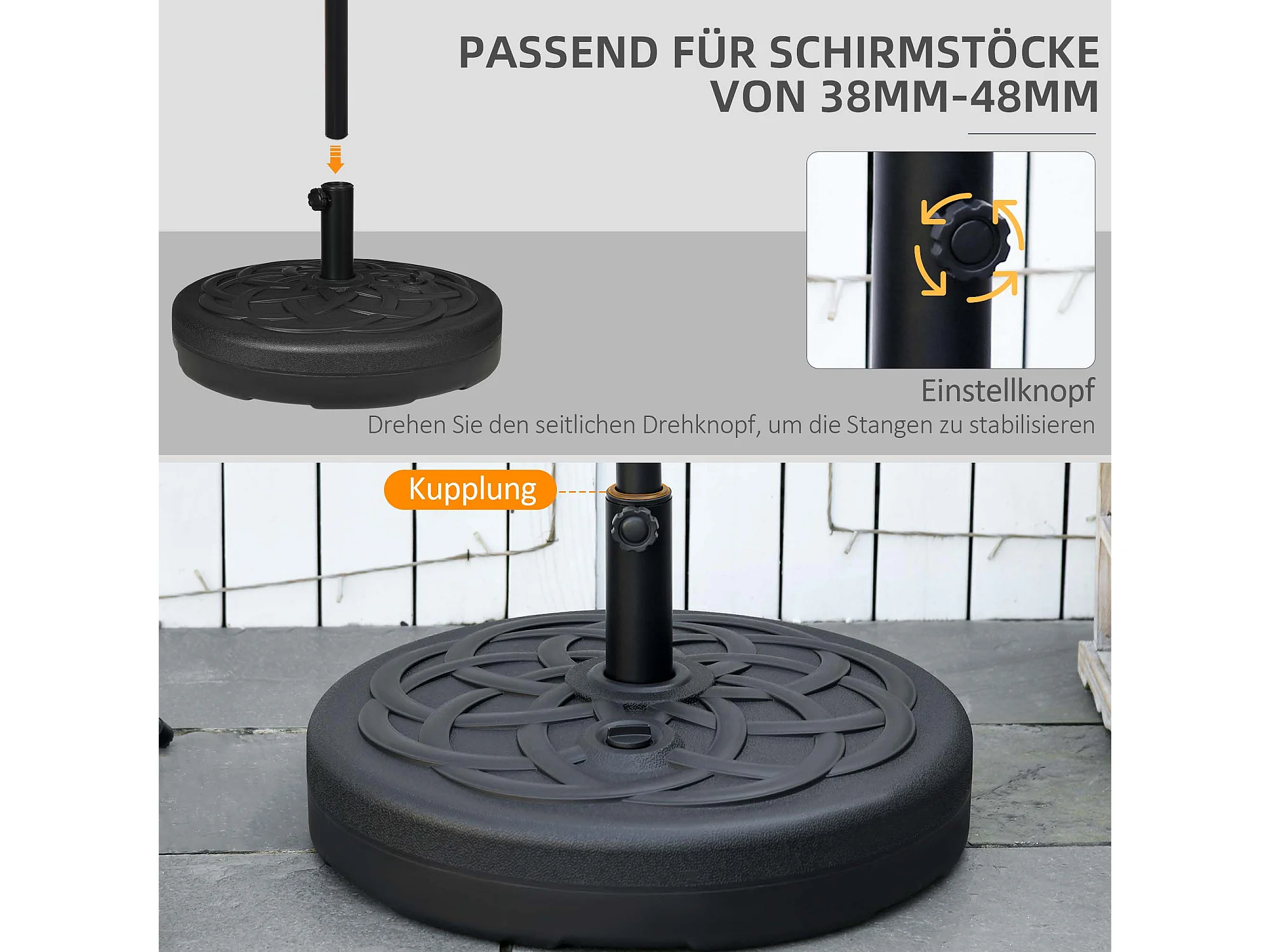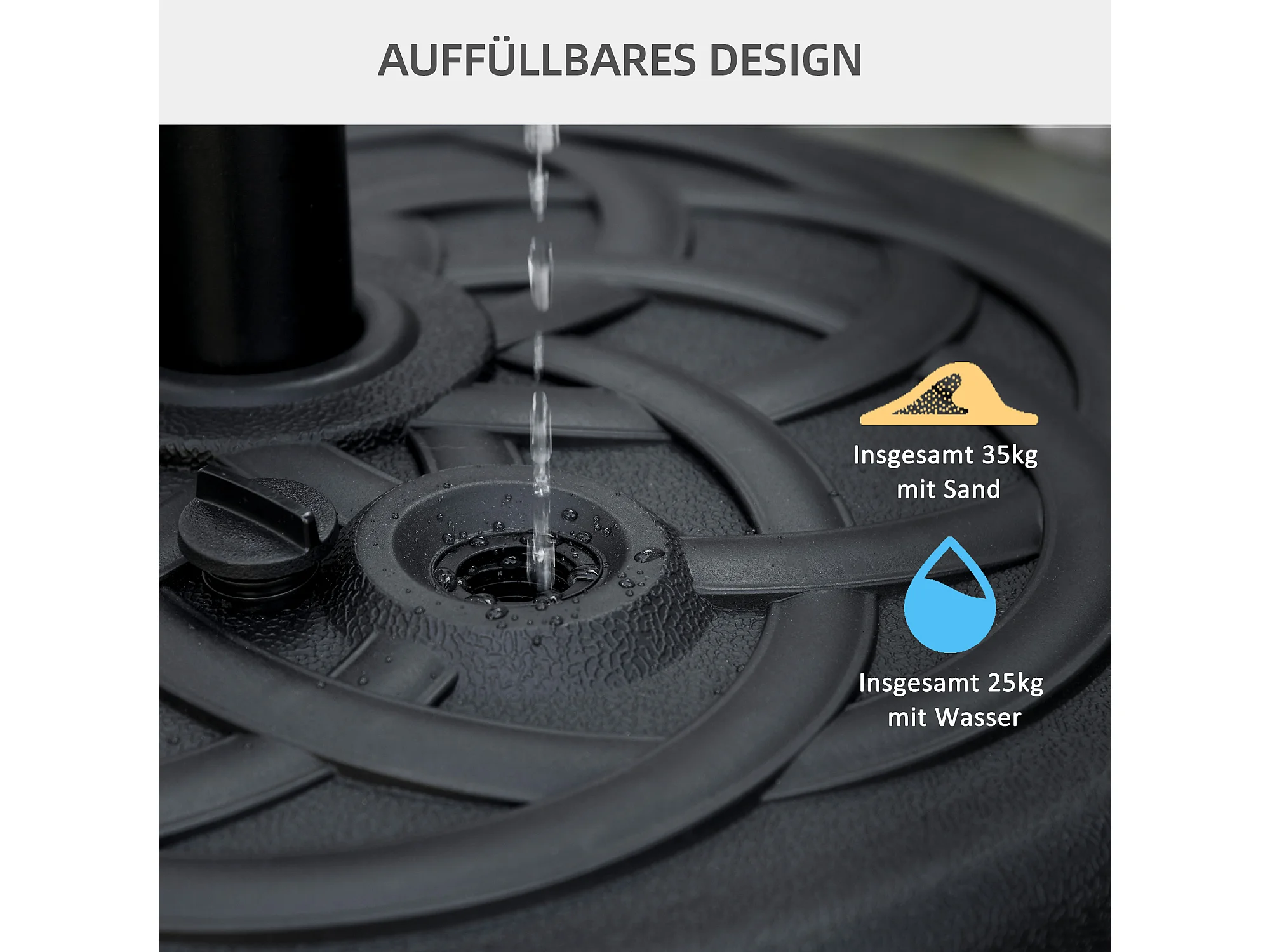 Parasolstandaard, stalen paal, vulbaar met water of zand, zwart (56x56x30,5 cm)