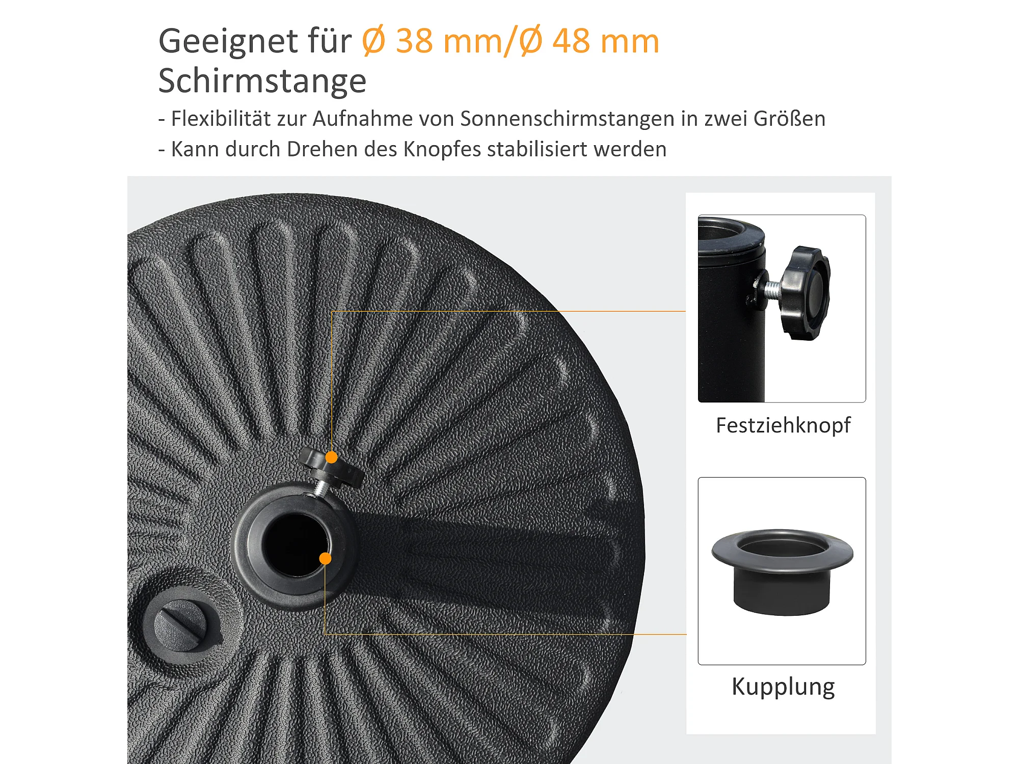 Parasolvoet 22 kg, voor palen Ø38/48 mm, zwart beton, stabiel en weerbestendig (51x51x12 cm)