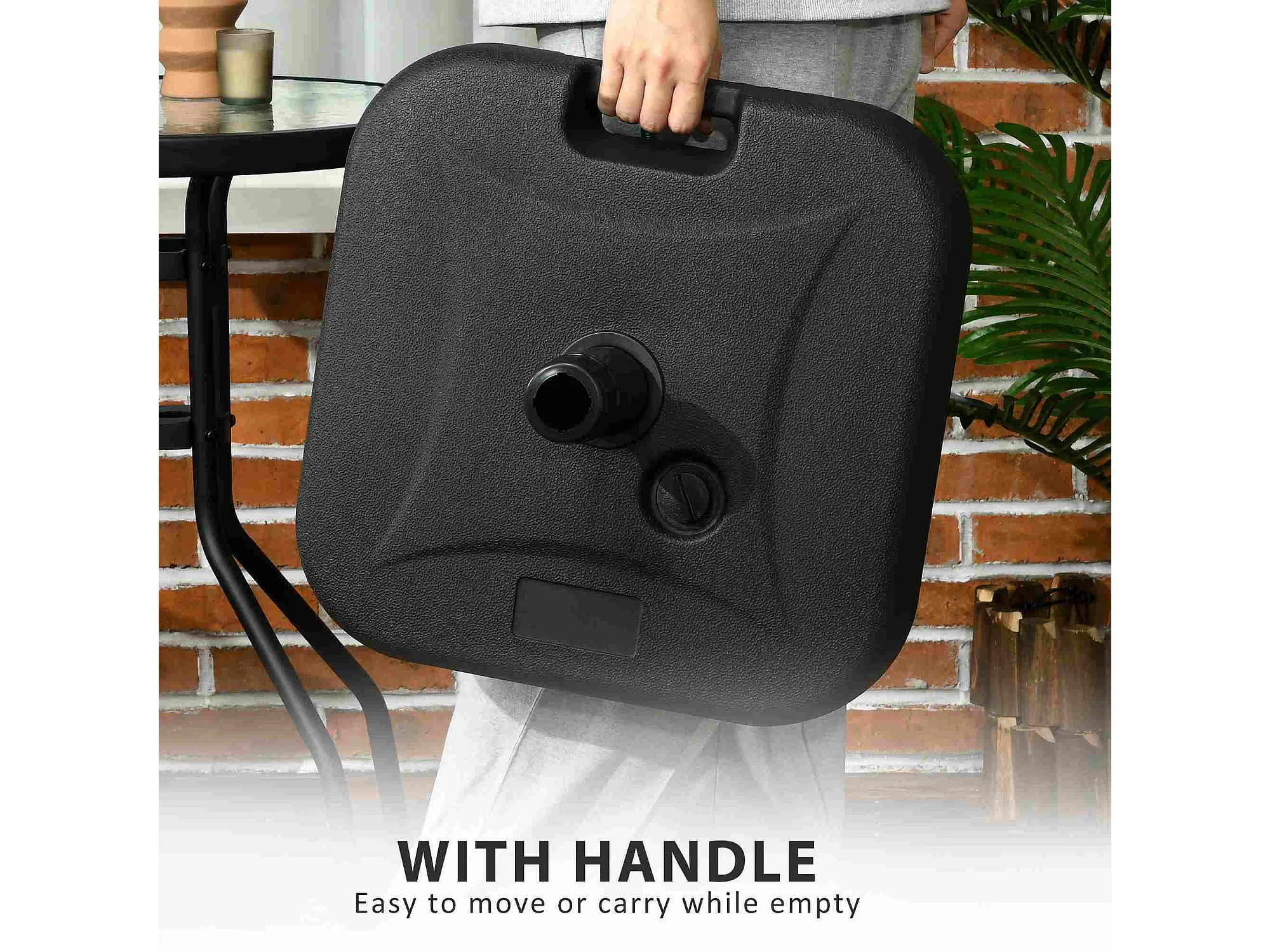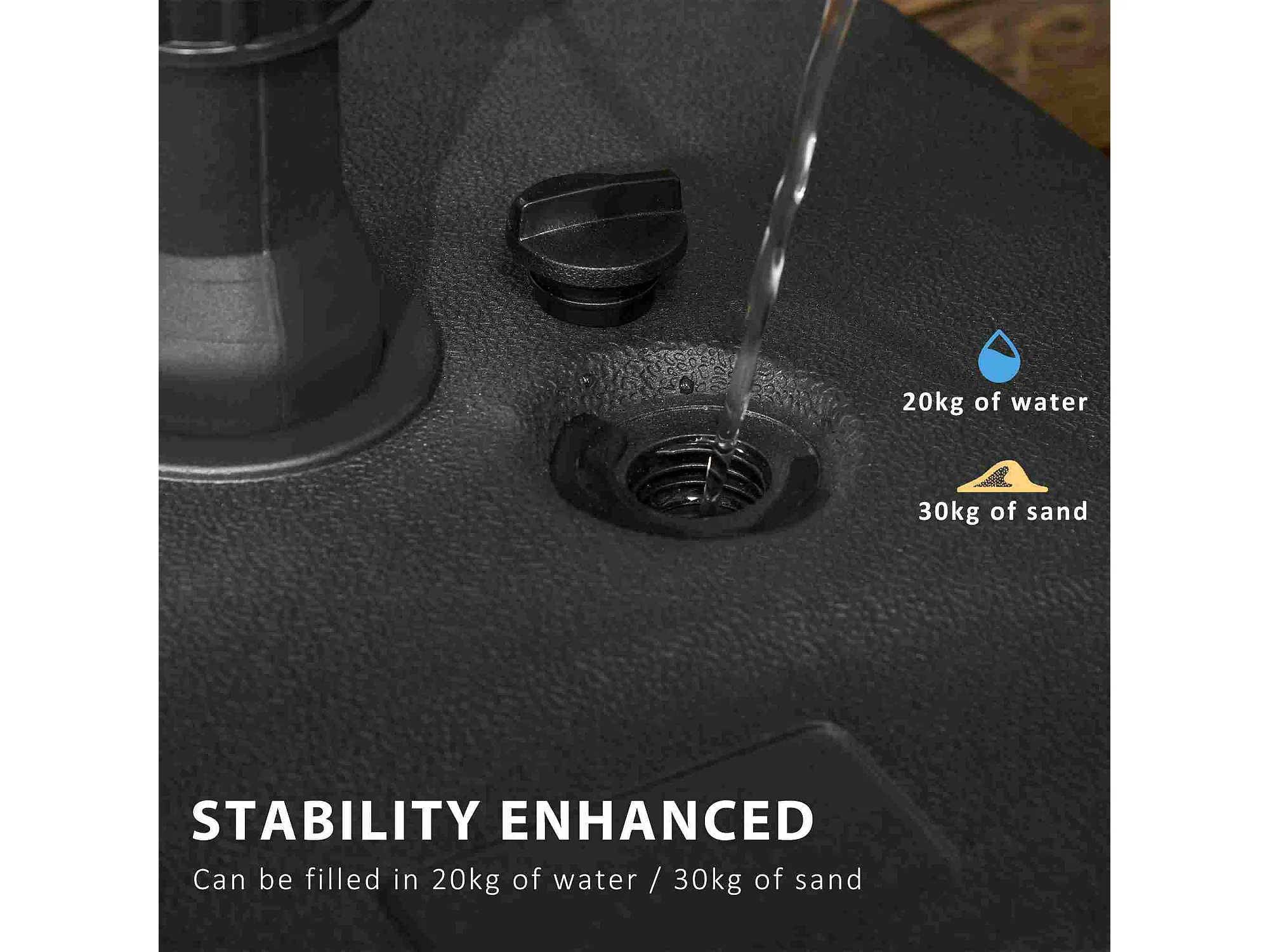 Parasolvoet met zand of water, zwart, kunststof, stabiel tot 30 kg (46x45x26 cm)