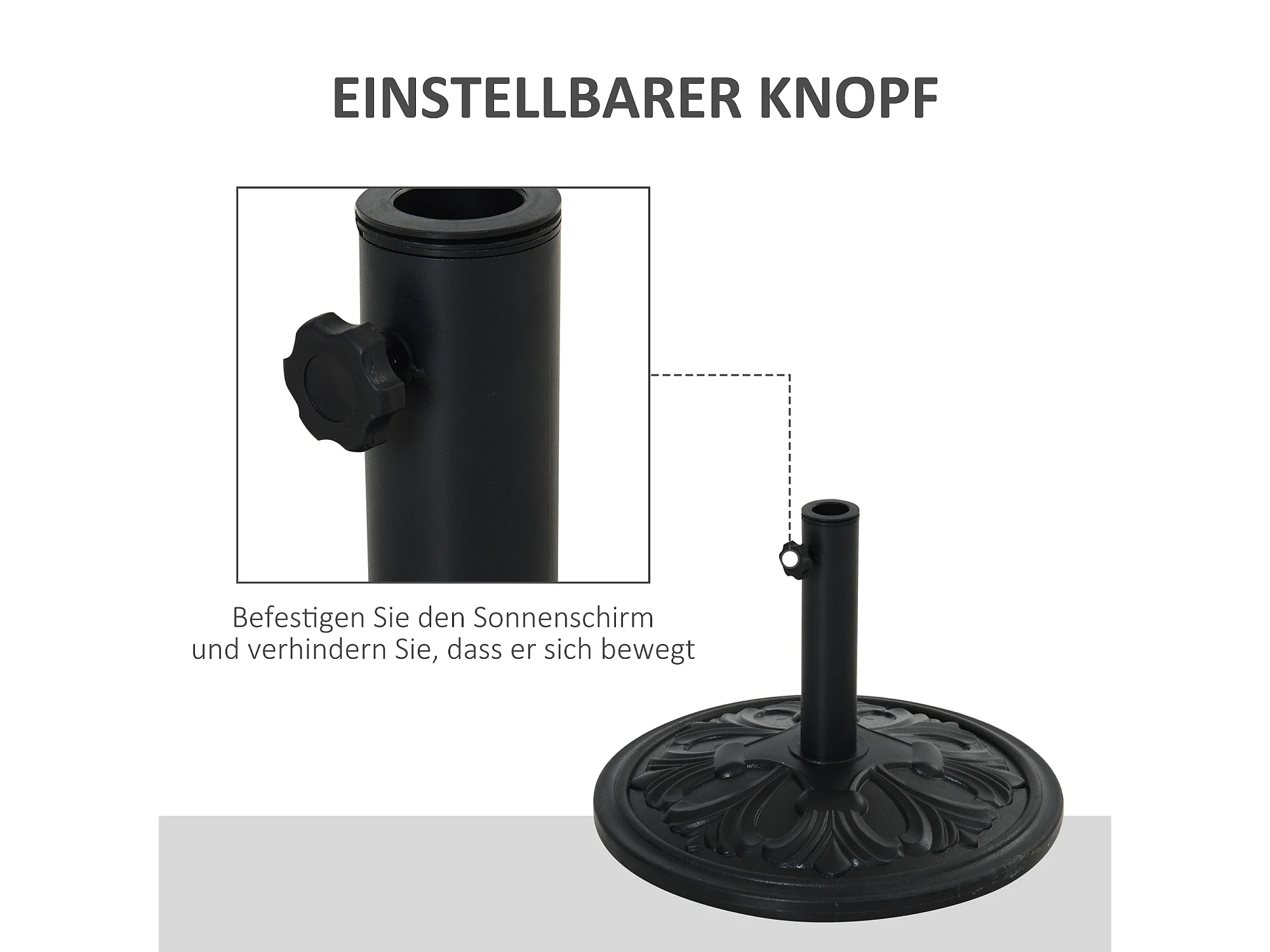 Parasolvoet van kunststof en beton, antiek zwart design, voor parasols Ø35/Ø38/Ø48 mm (48x48x34 cm)