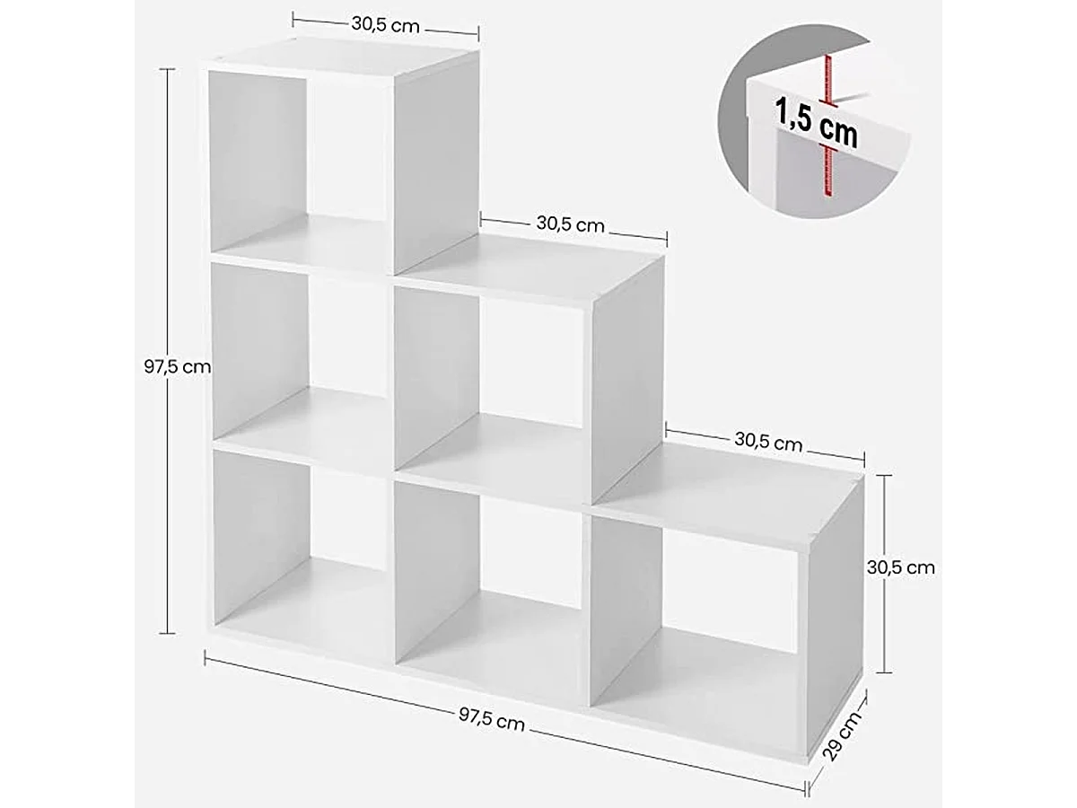 Parya Home Boekenkast- 6 vakken traprek - wit