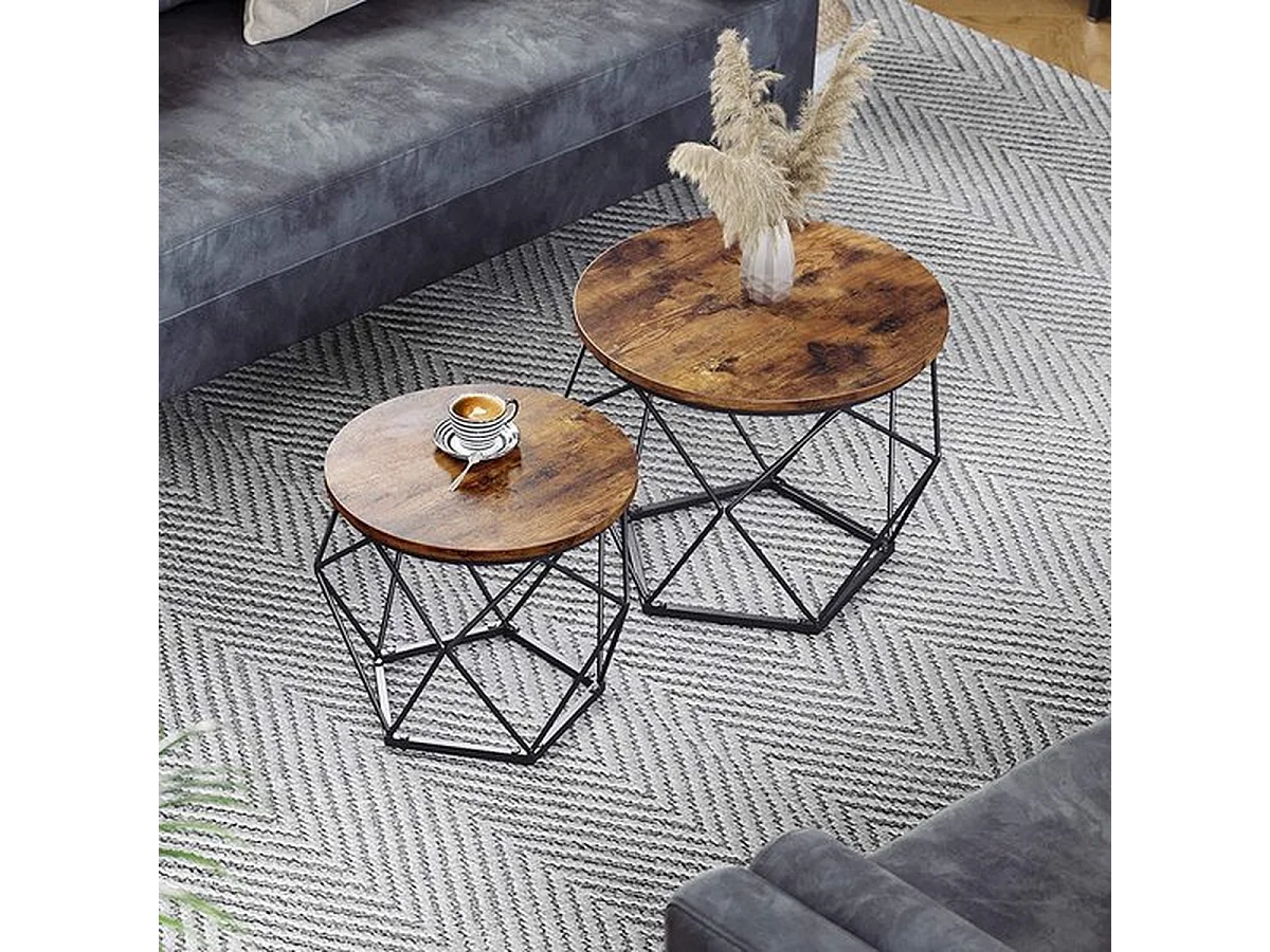 Salontafel TOBIAS - Ø75x44cm - Bruin - Set van 2