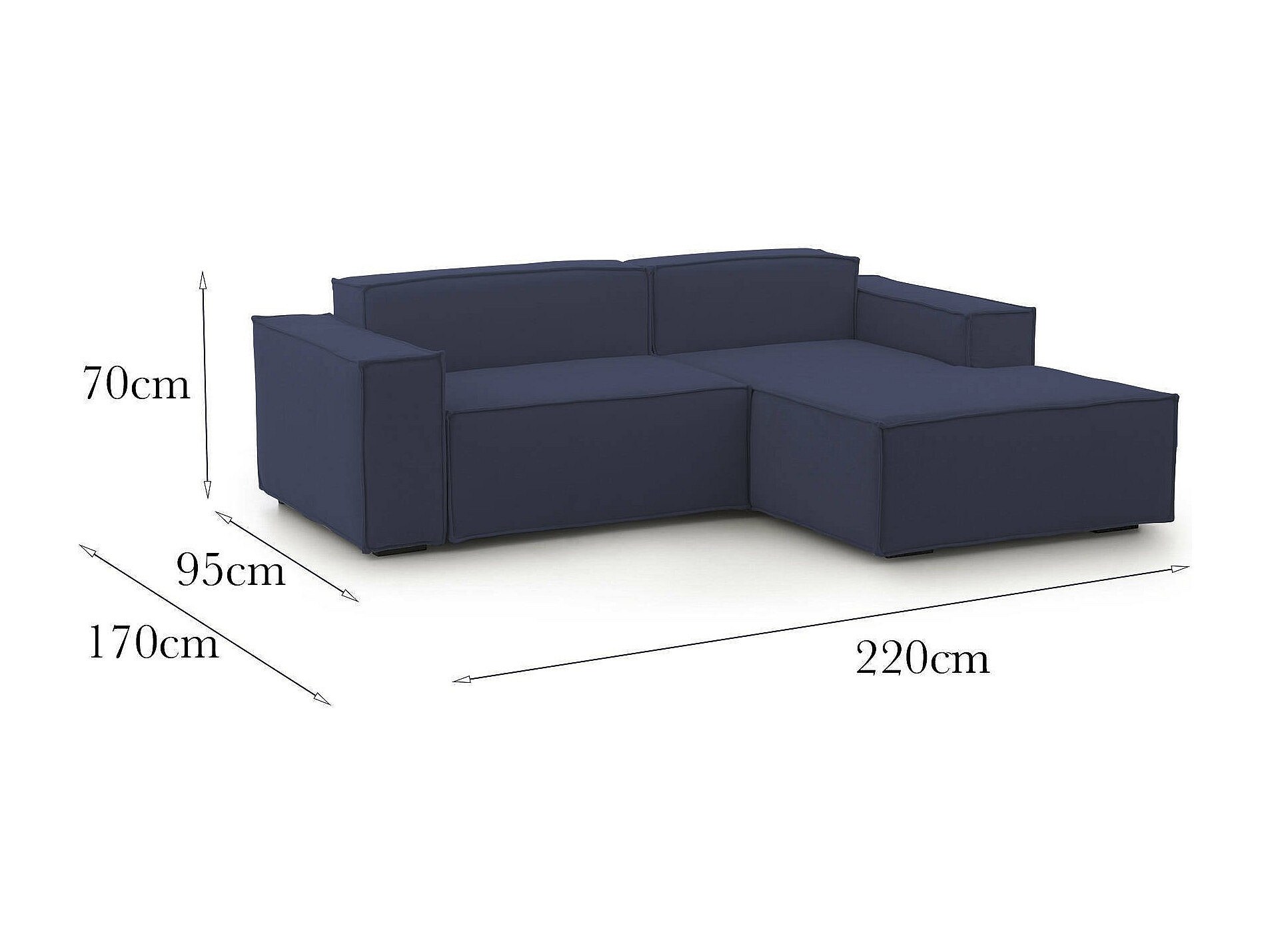 Dlorenz vaste bank, 2-zits modulaire bank met rechterschiereiland, 100% Made in Italy, Moderne stoffen bank, 220x170h70 cm, Blauw