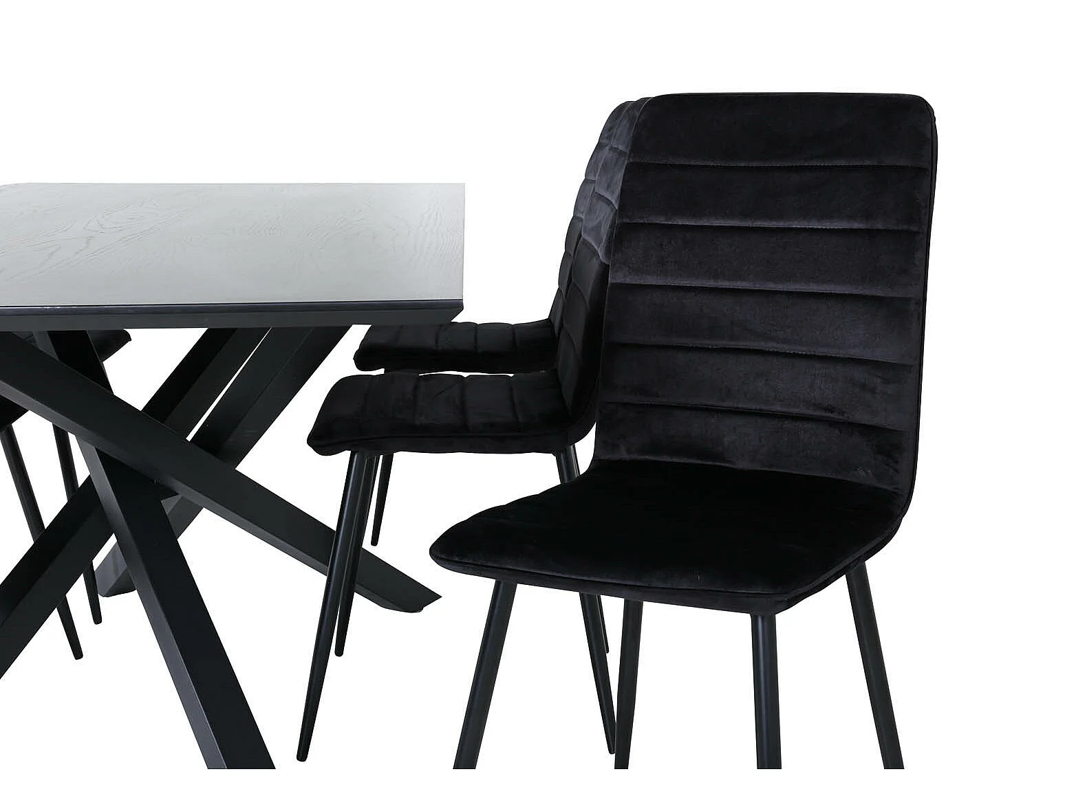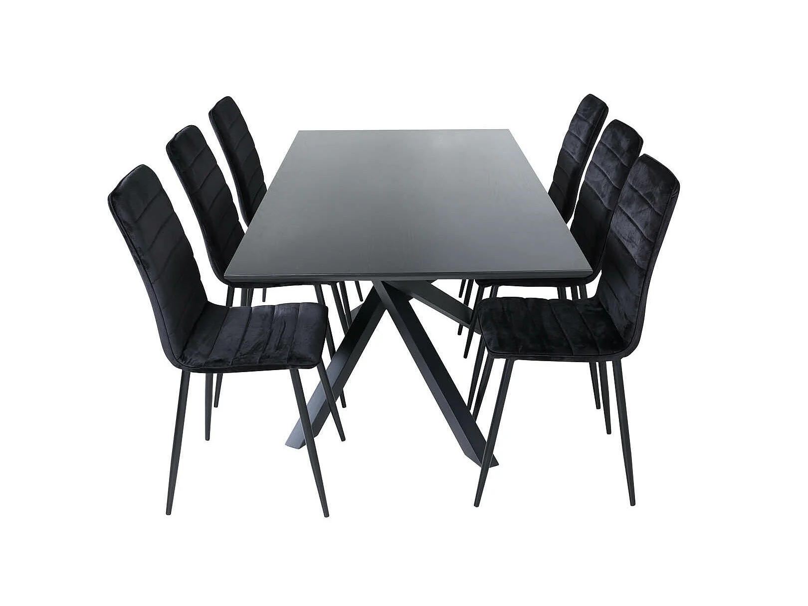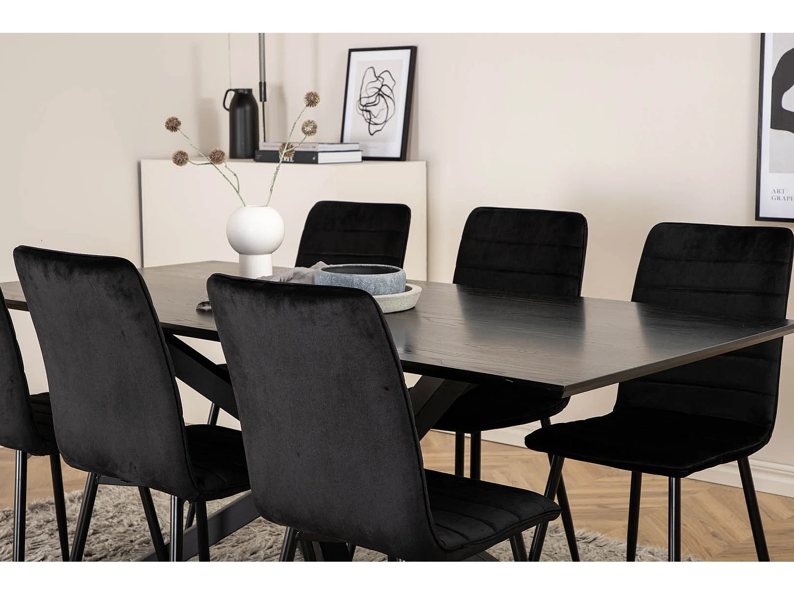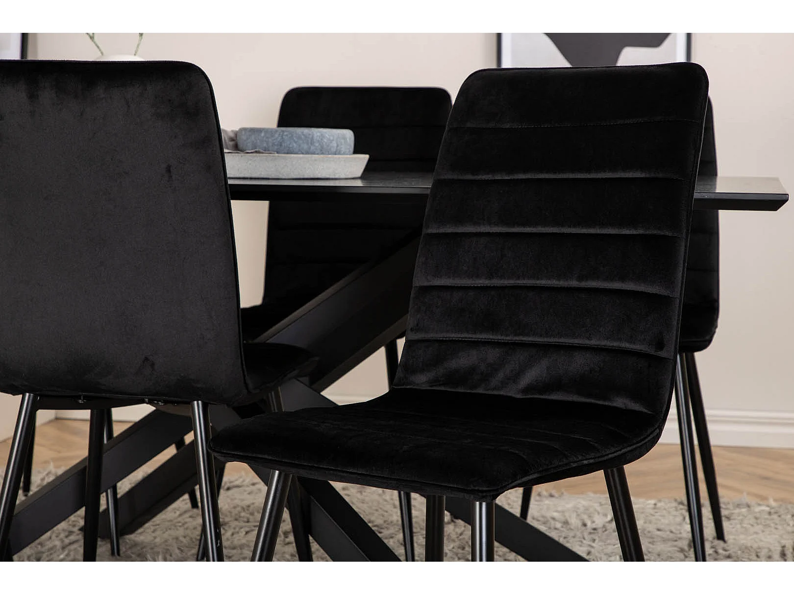 PiazzaBLBL eethoek eetkamertafel zwart en 6 Windu Lyx eetkamerstal velours zwart.