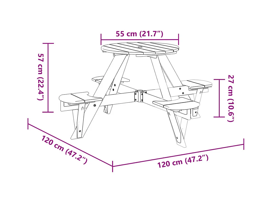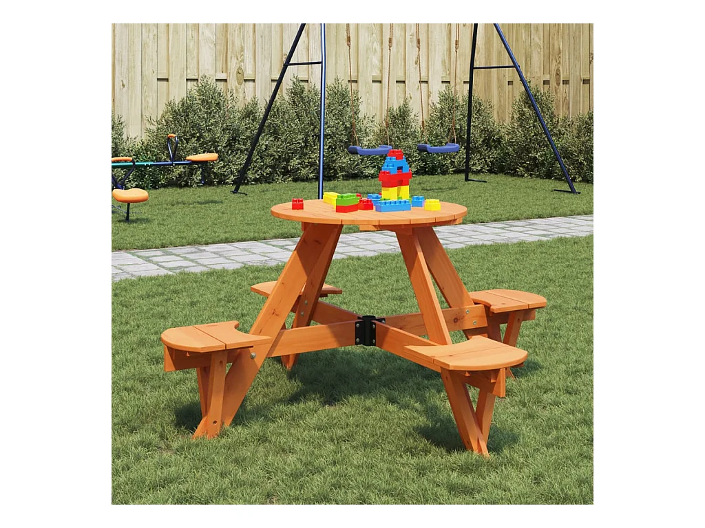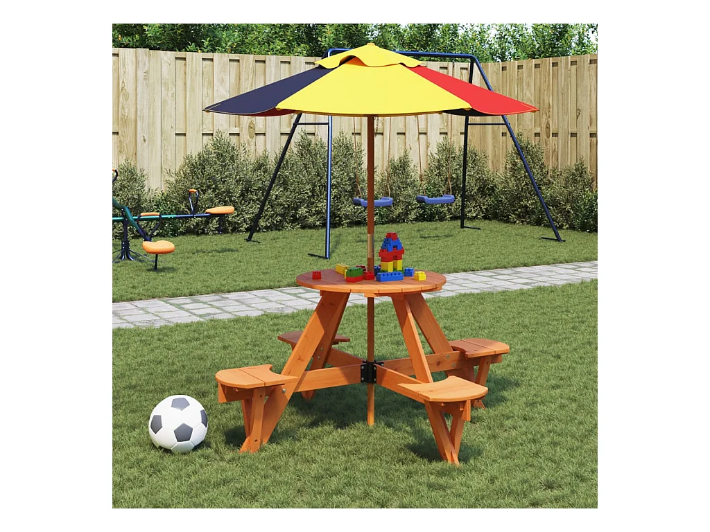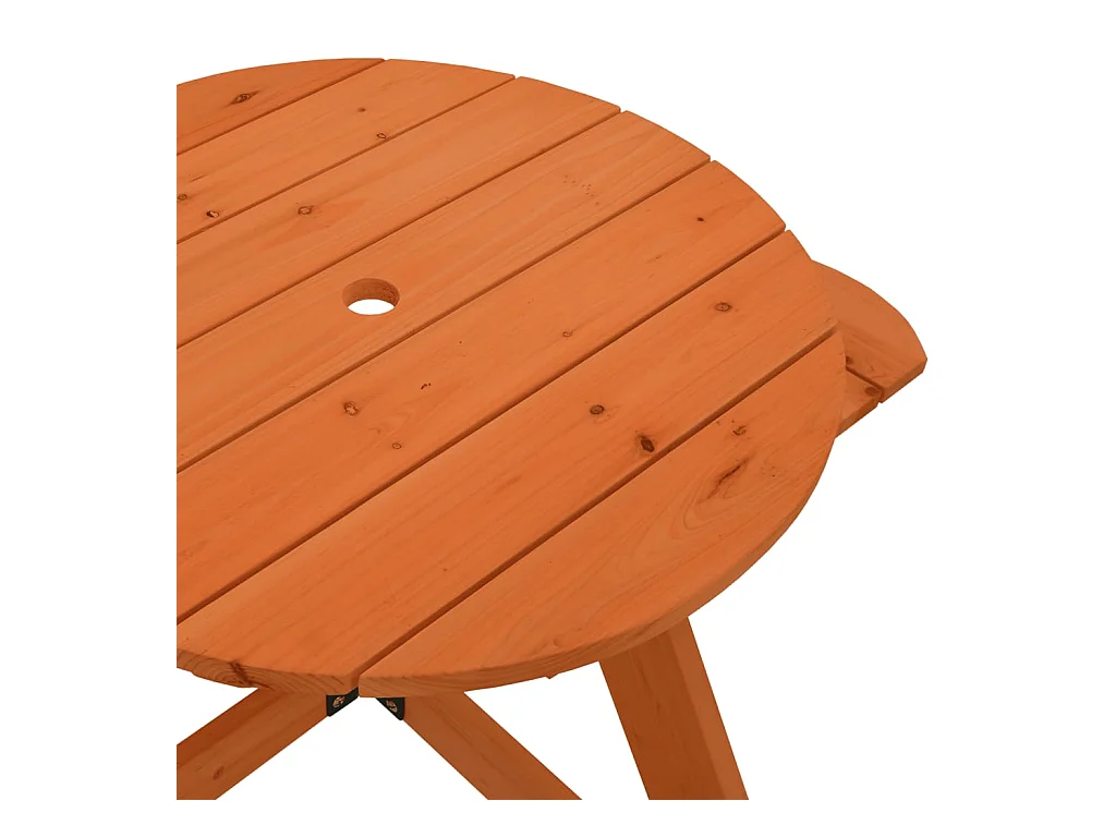 Picknicktafel voor 4 kinderen met parasolgat rond vurenhout