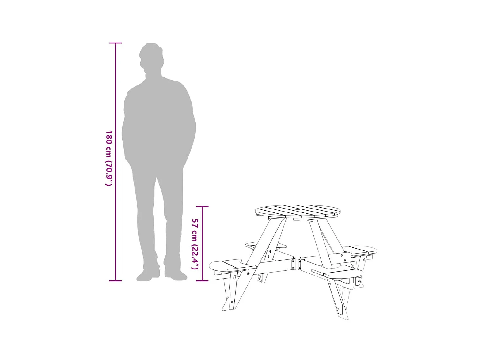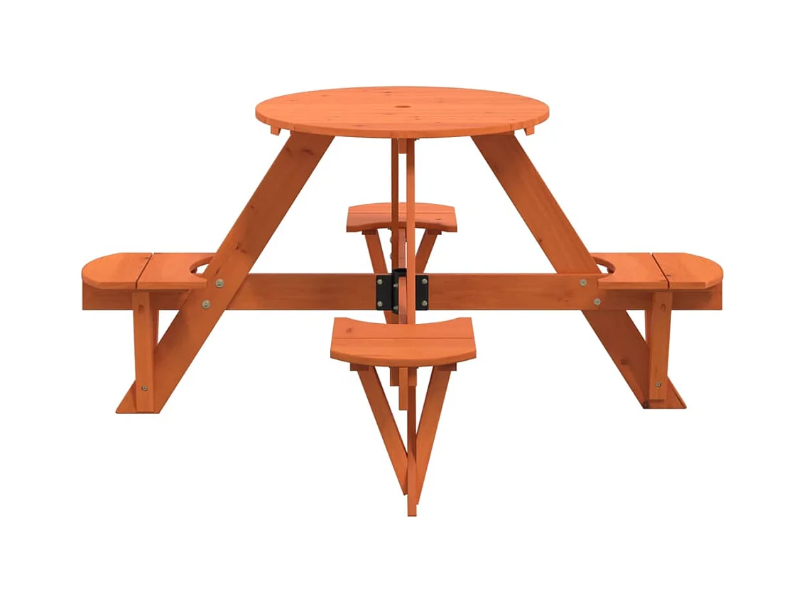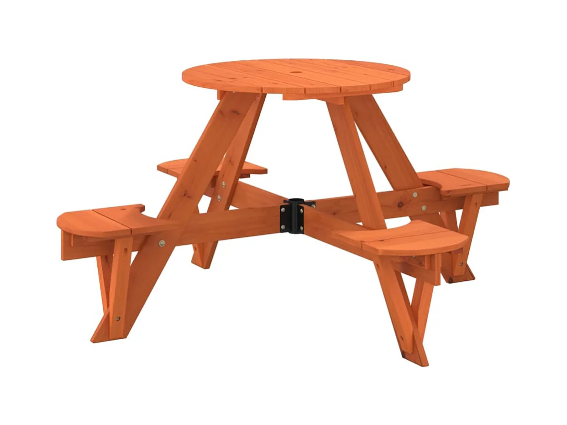 Picknicktafel voor 4 kinderen met parasolgat rond vurenhout