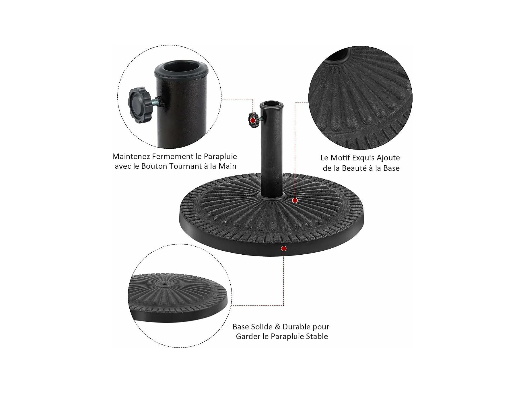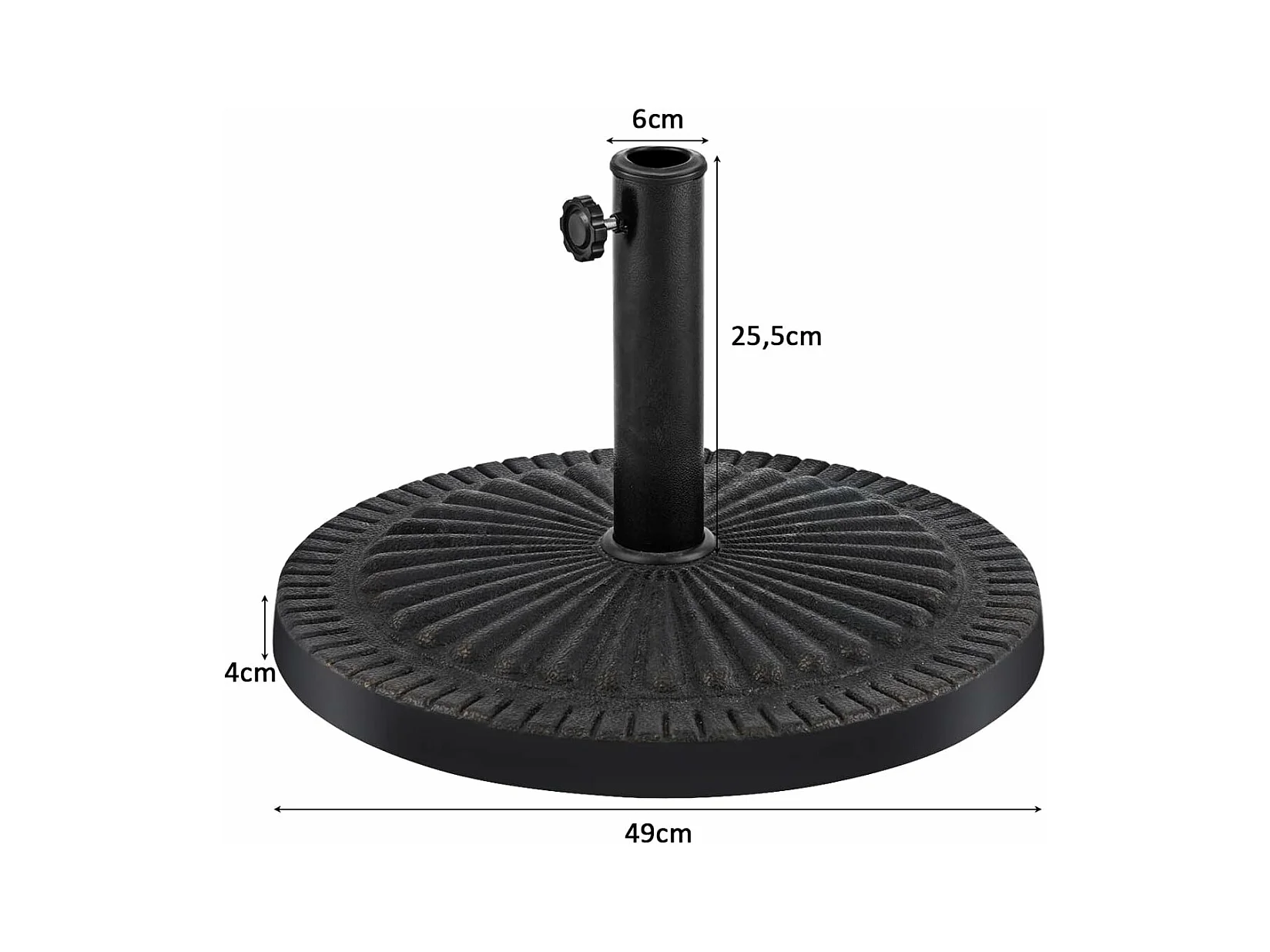 Pied de Parasol Beton φ49,5CM 15 KG, Pied de Parasol en Résine avec Bouton Rotatif, Résistant aux Intempéries, pour Poteaux de Parasol 35/48 mm