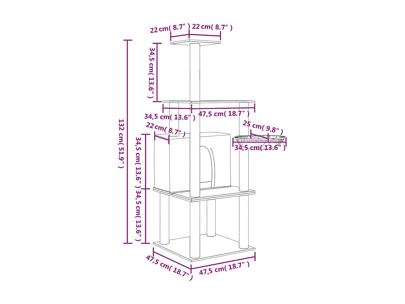 Hemiksem Kattenmeubel met sisal krabpalen 133,5 cm donkergrijs