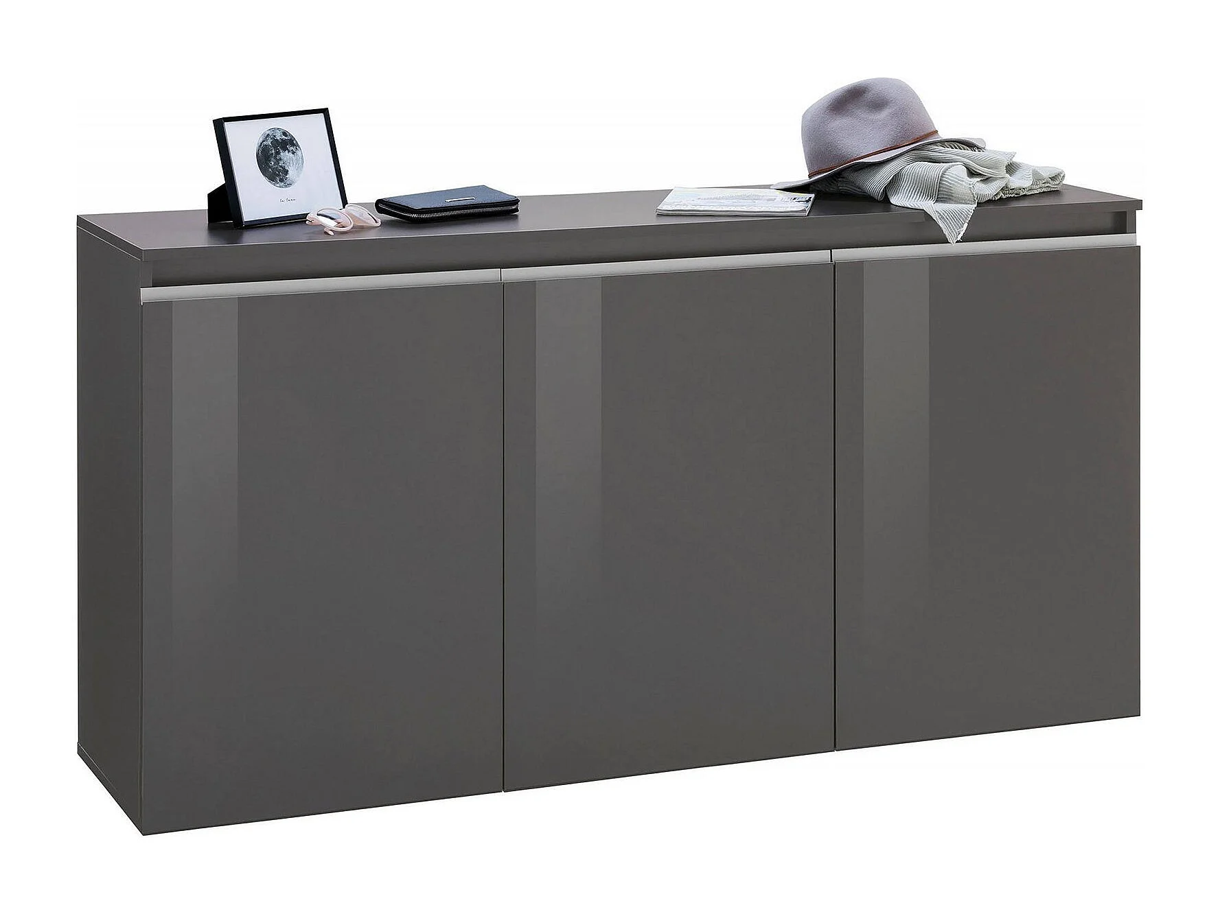 Pino dressoir, 3-deurs keukendressoir, Woonkamerbuffet, 100% Made in Italy, 150x40h81 cm, Glanzend antraciet