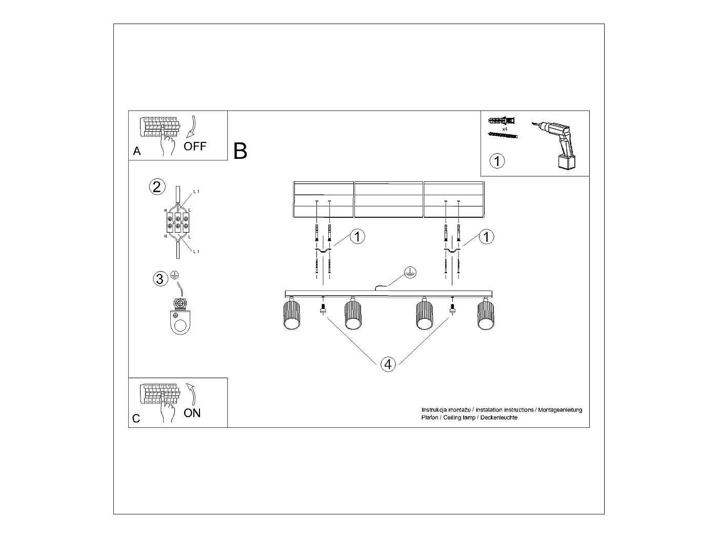 Plafondlamp Gloow minimalistisch van - 4 lichtbronnen 3000K - L.81 x H.16,5 cm - zwart