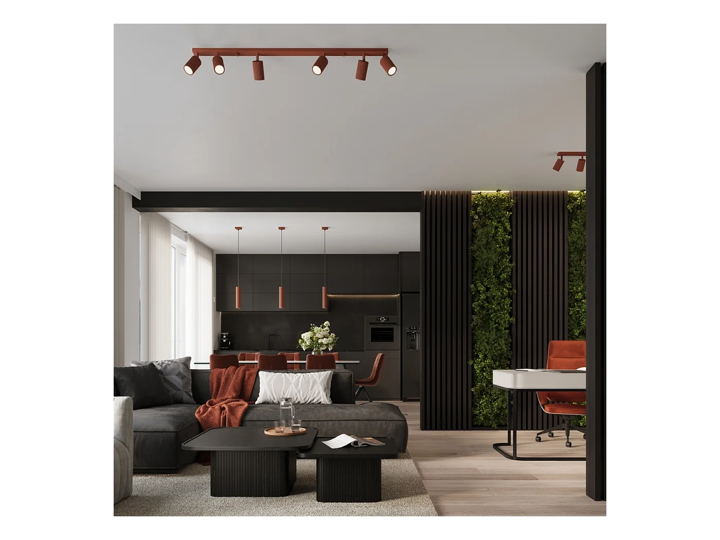 Plafondlamp Gloow minimalistisch van - 6 lichtbronnen 3000K - L.117 x H.16,5 cm - rode oker