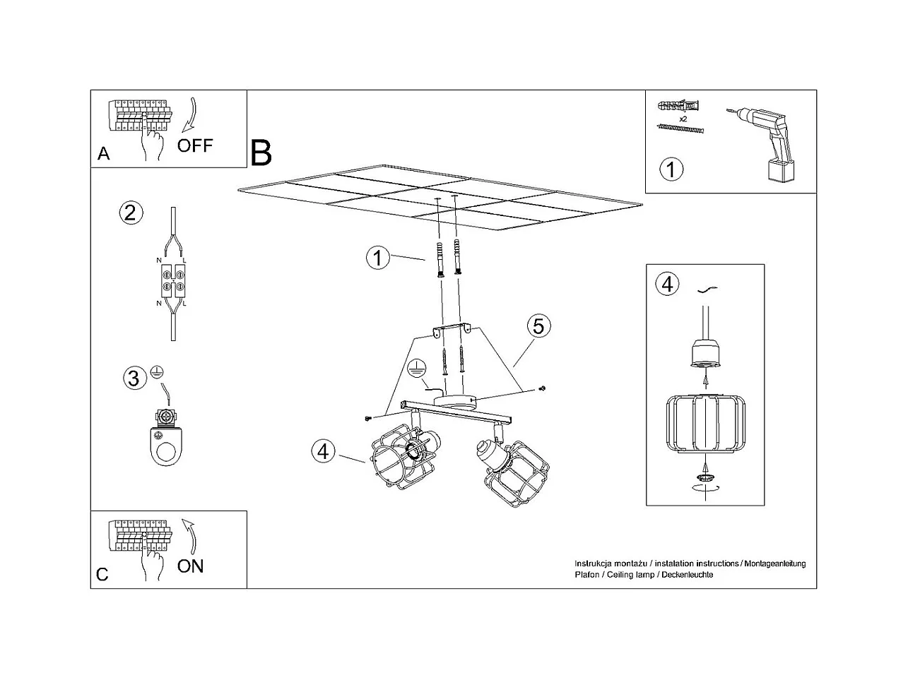 NETTLIFE Opbouwspot Hout zwart cilinder 2-lichts E14 Fitting 350° draaibar Plafondspot Kooiontwerp Max.25W Vintage Plafondlamp