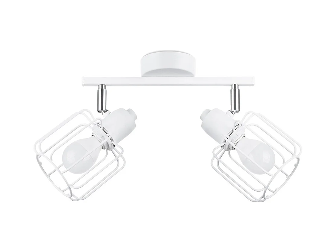 NETTLIFE Opbouwspot Hout wit cilinder 2-lichts E14 Fitting 350° draaibar Plafondspot Kooiontwerp Max.25W Vintage Plafondlamp
