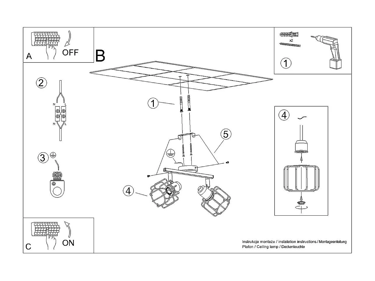 NETTLIFE Opbouwspot Hout zwart cilinder 2-lichts E14 Fitting 350° draaibar Plafondspot Kooiontwerp Max.25W Vintage Plafondlamp