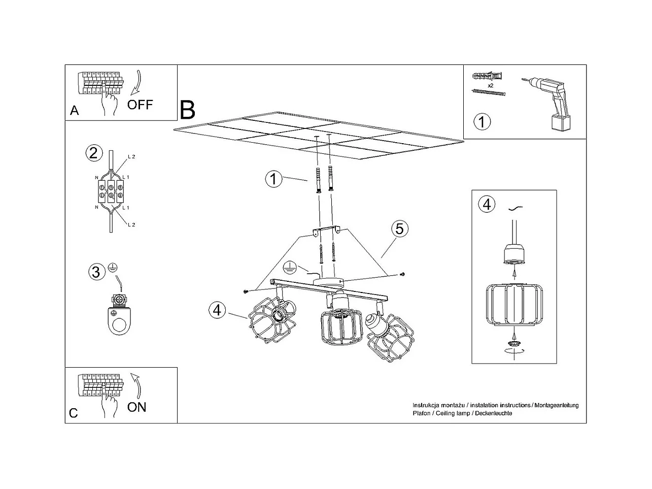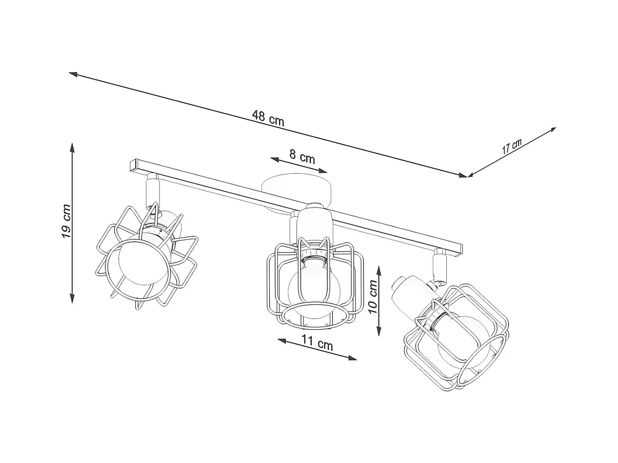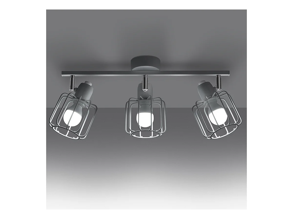 NETTLIFE Opbouwspot Hout zwart cilinder 3-lichts E14 Fitting 350° draaibar Plafondspot Kooiontwerp Max.25W Vintage Plafondlamp