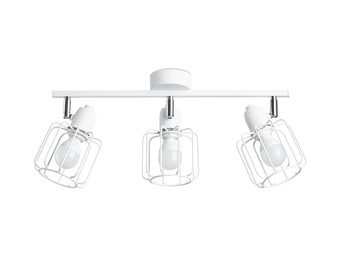NETTLIFE Opbouwspot Hout wit cilinder 3-lichts E14 Fitting 350° draaibar Plafondspot Kooiontwerp Max.25W Vintage Plafondlamp