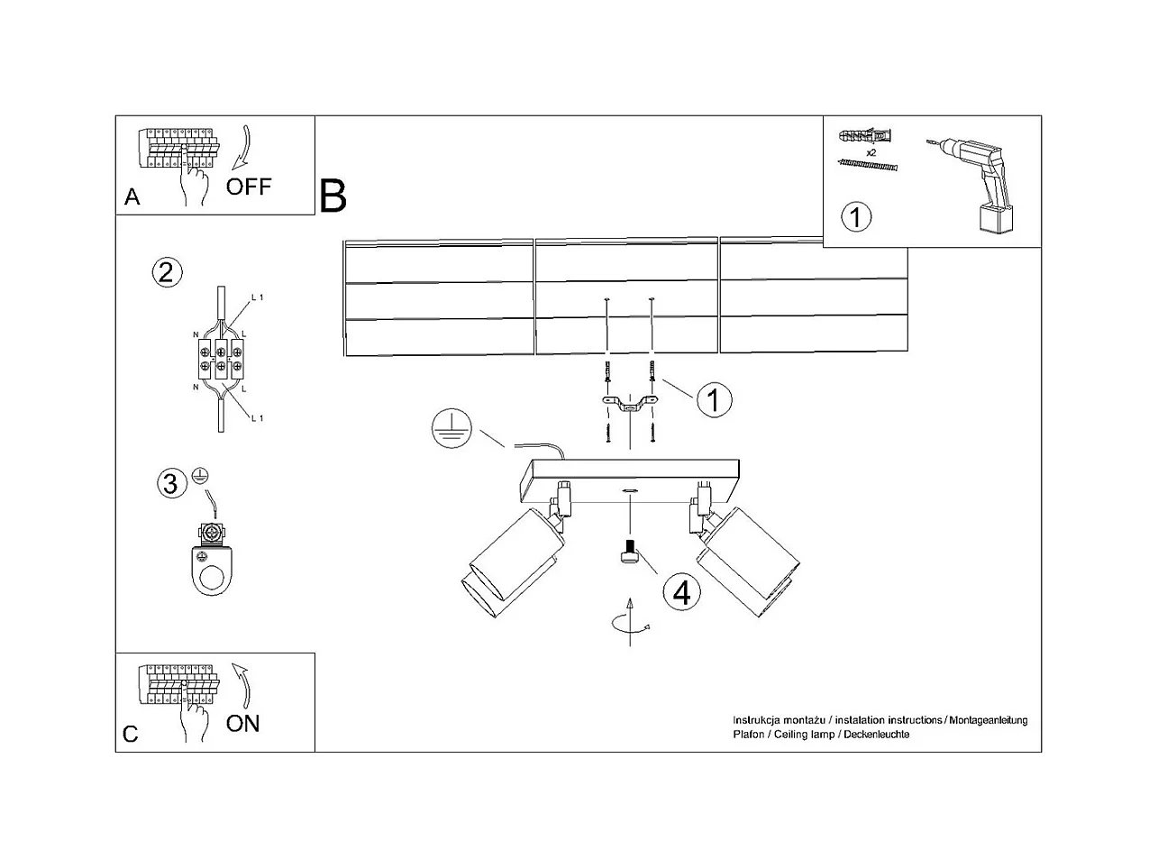 Plafondlampen Rayis modern van - 4 lichtbronnen 3000K - L.25 x H.16 cm - zwart