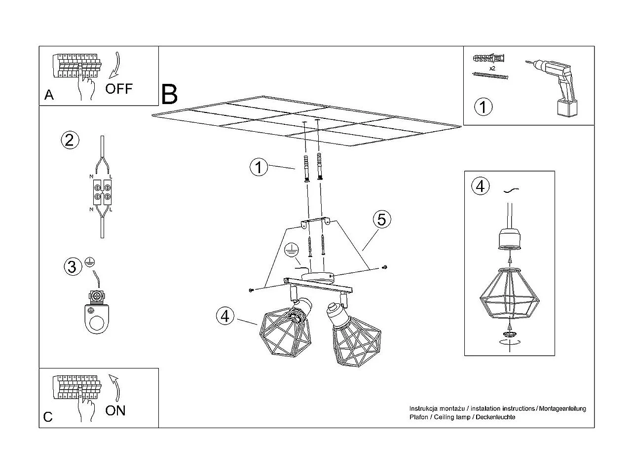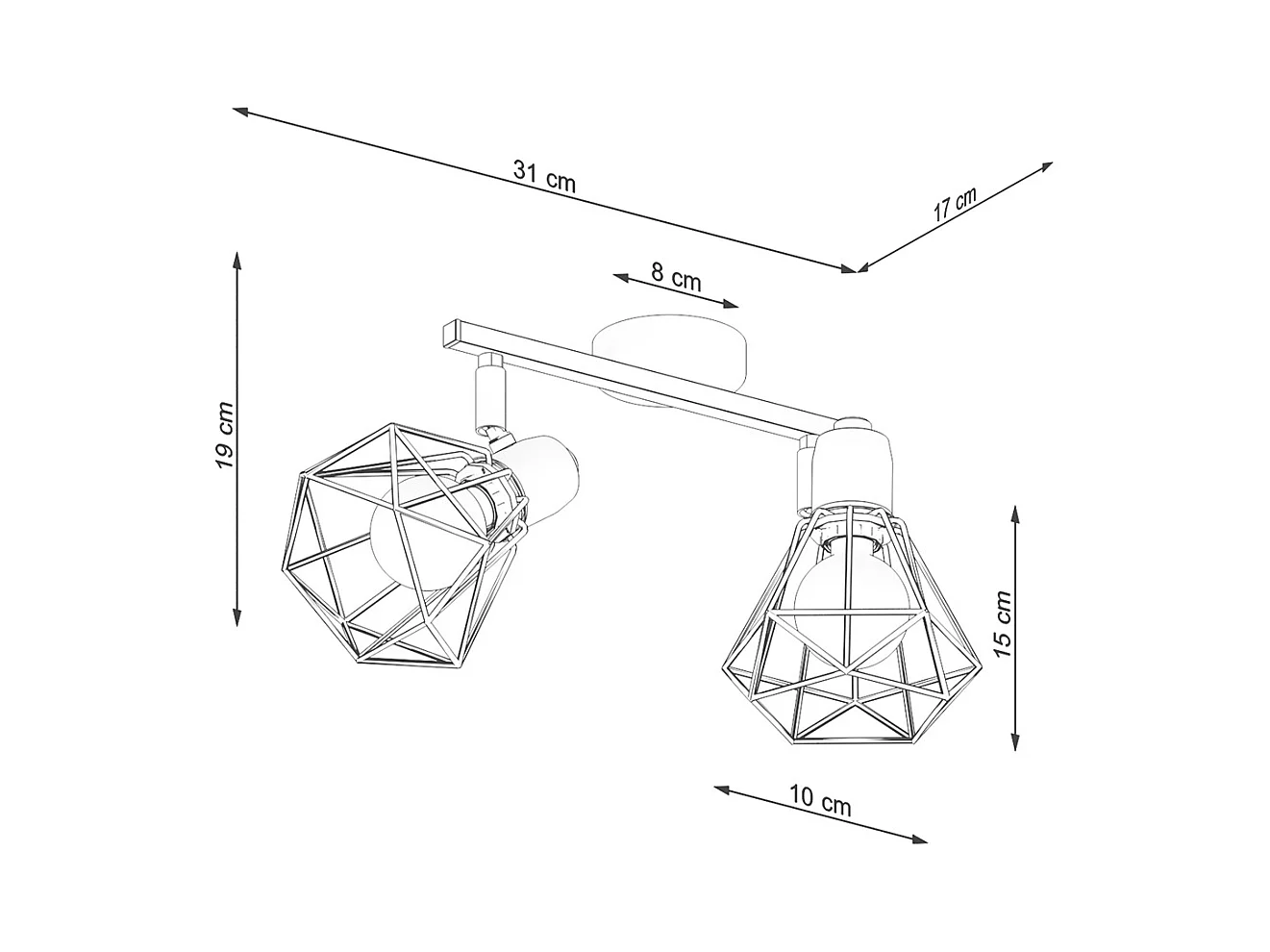 NETTLIFE Opbouwspot Hout zwart cilinder 2-lichts E14 Fitting 350° draaibar Plafondspot Kooiontwerp Max.25W Vintage Plafondlamp