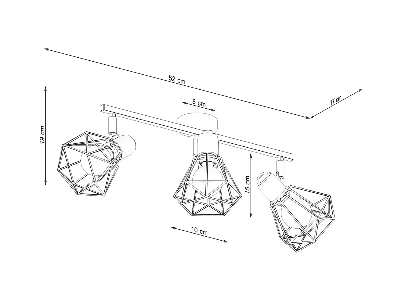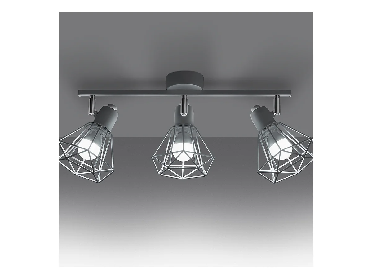 NETTLIFE Opbouwspot Hout zwart cilinder 3-lichts E14 Fitting 350° draaibar Plafondspot Kooiontwerp Max.25W Vintage Plafondlamp