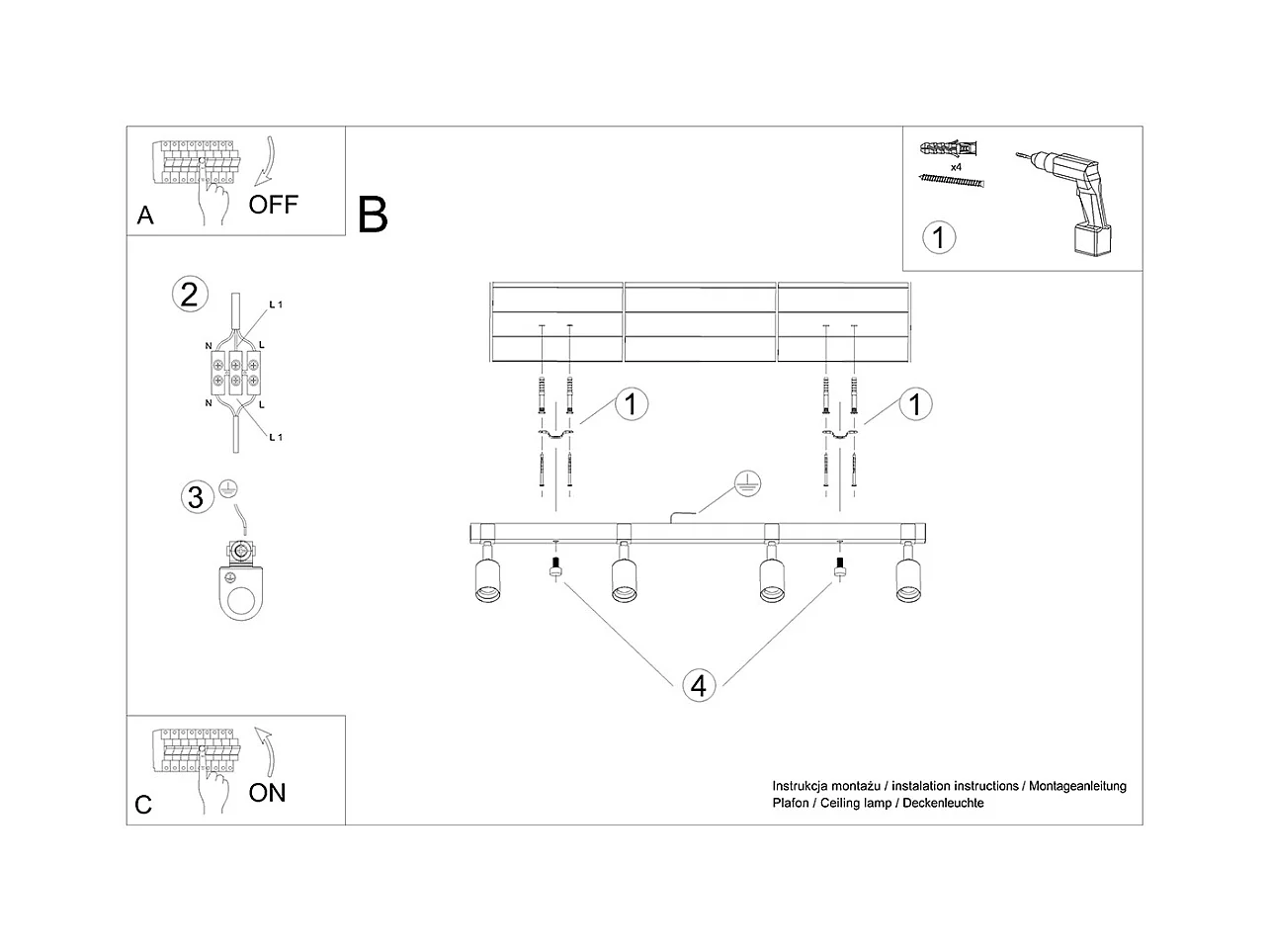 Plafondlamp Omiq Modern Van - 4 Lichtbronnen - L.30 X H.15 Cm - Zwart