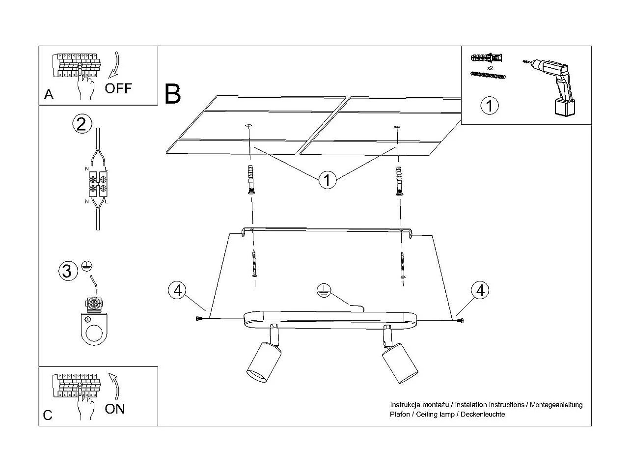 Plafondlampen Zavros modern van - 2 lichtbronnen 4000K - L.34 x H.13 cm - zwart