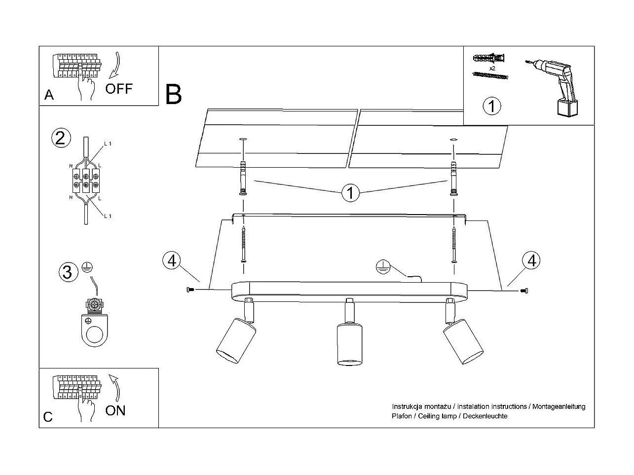 Zwarte metalen plafondlamp MARIE - 3 lampen, modern en minimalistisch design