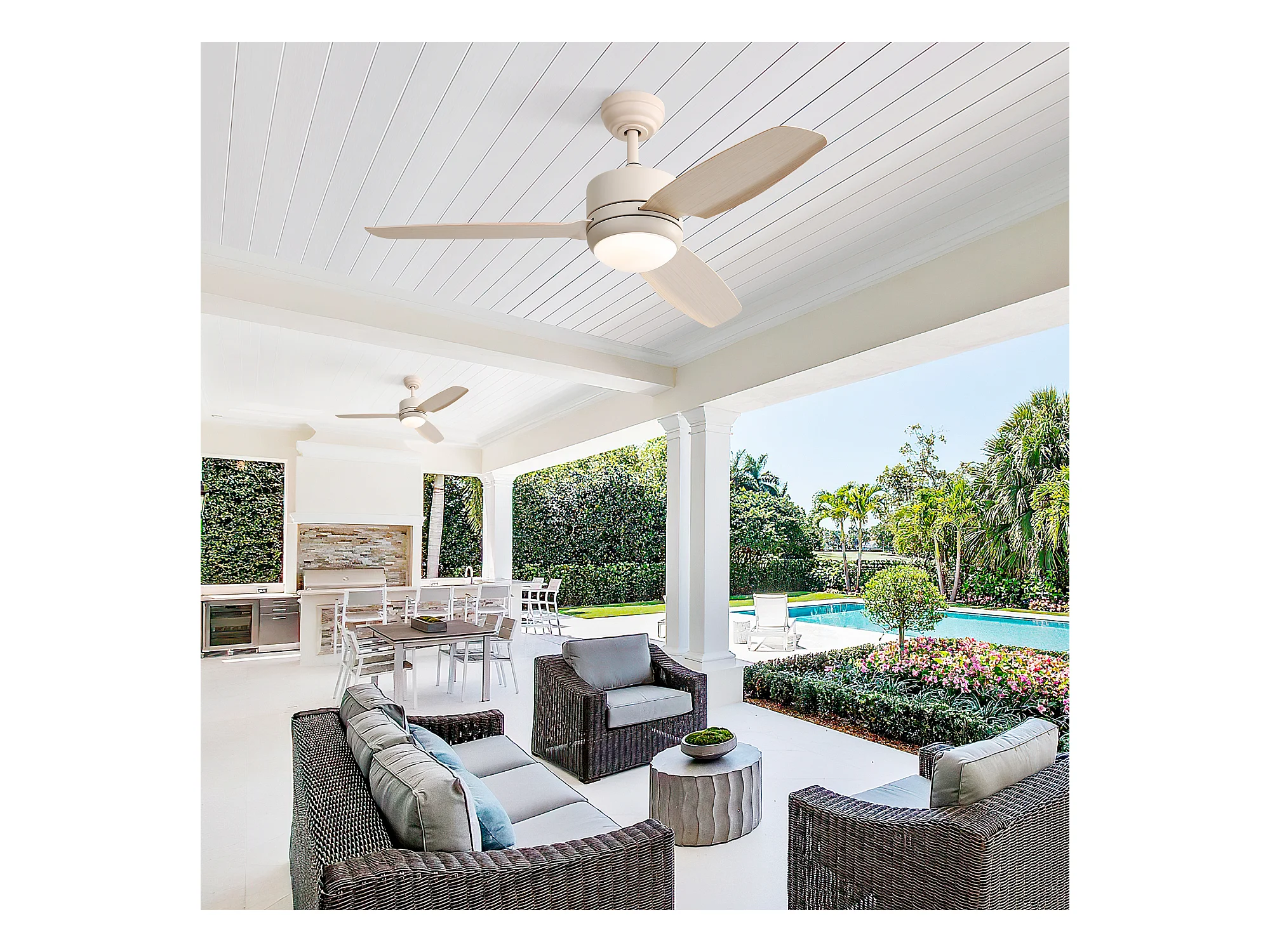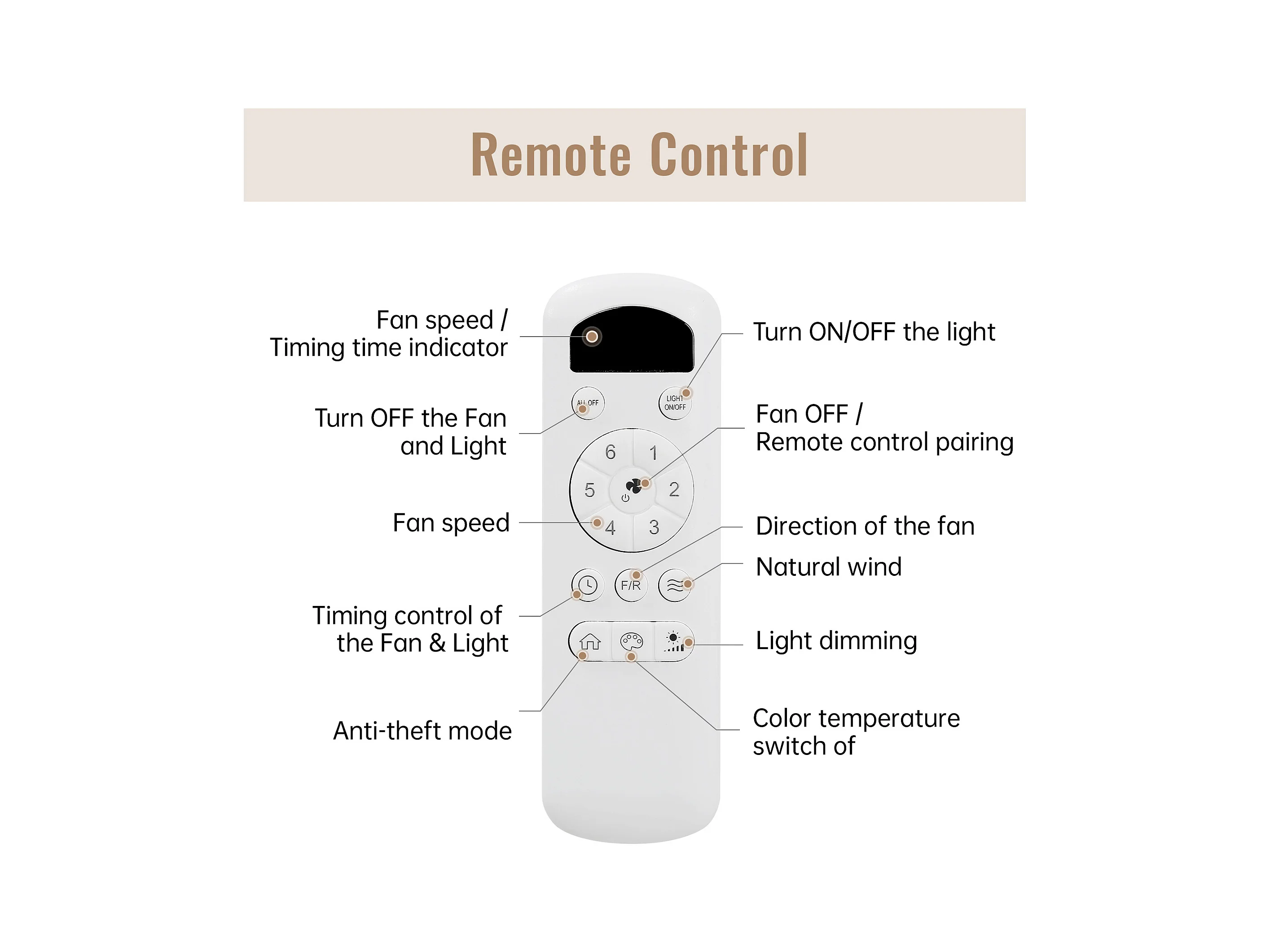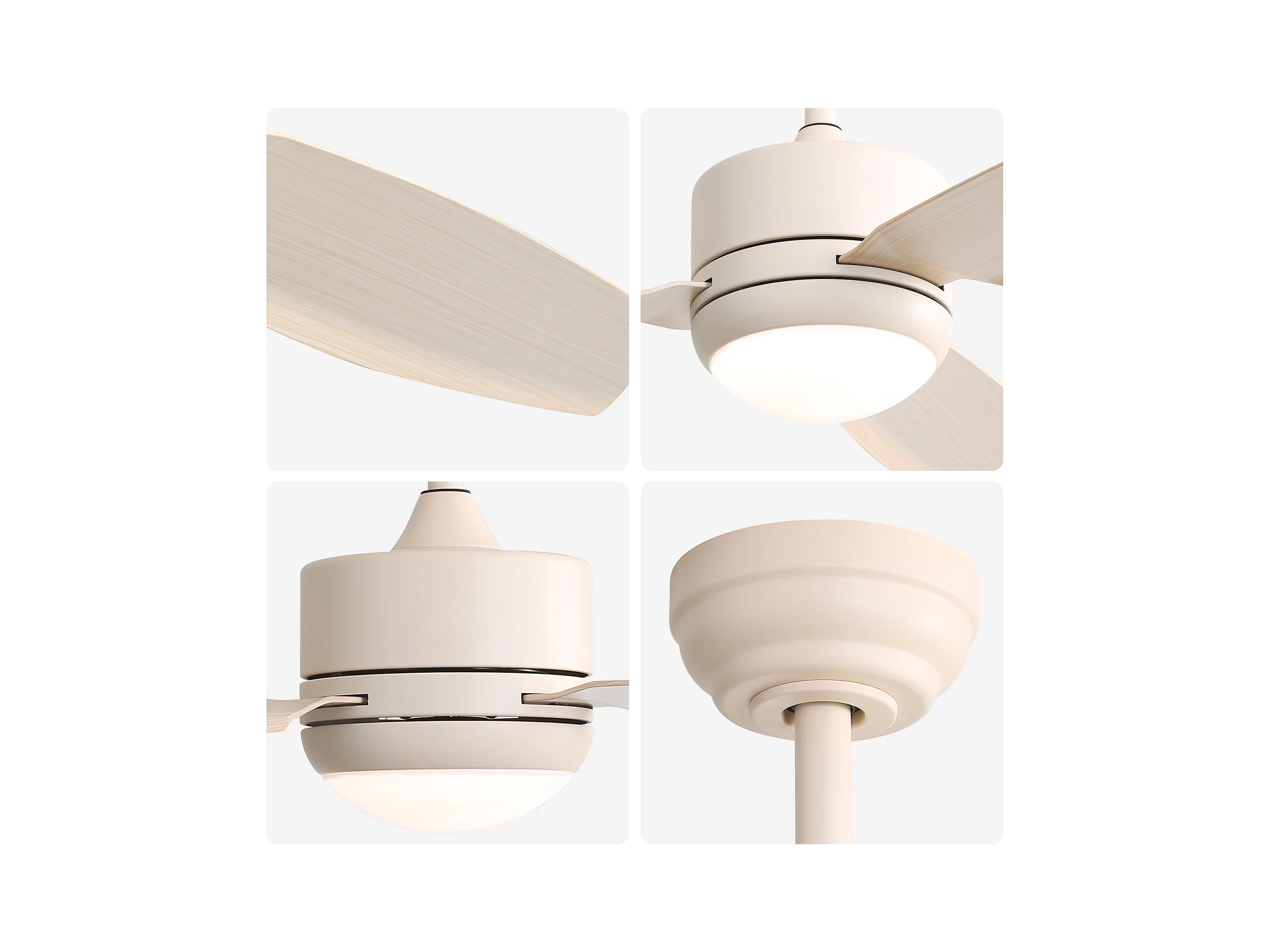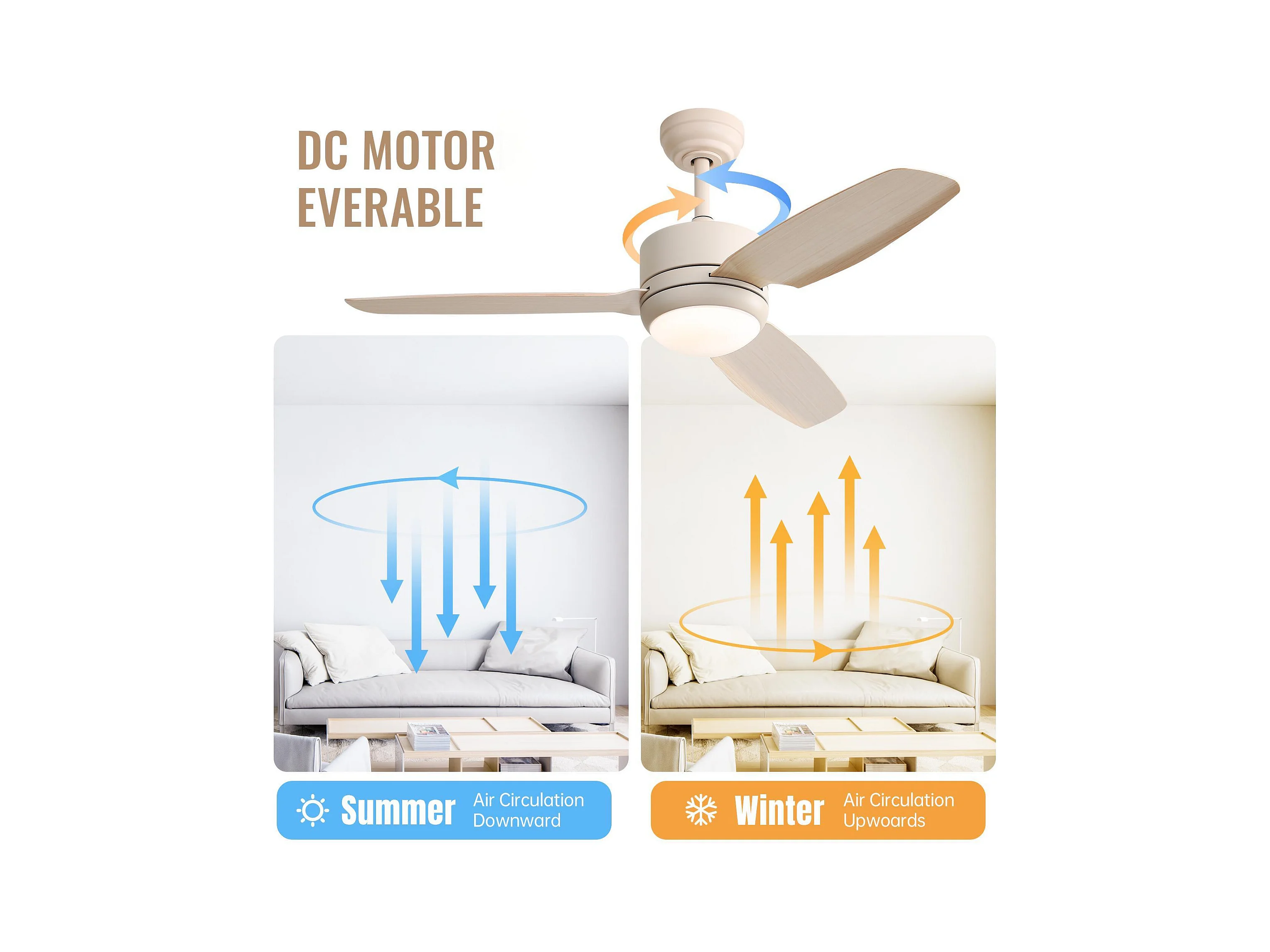 116,8 cm plafondventilator met 3 ABS-bladen, LED, 6 snelheden, omkeerbare DC-motor, beige
